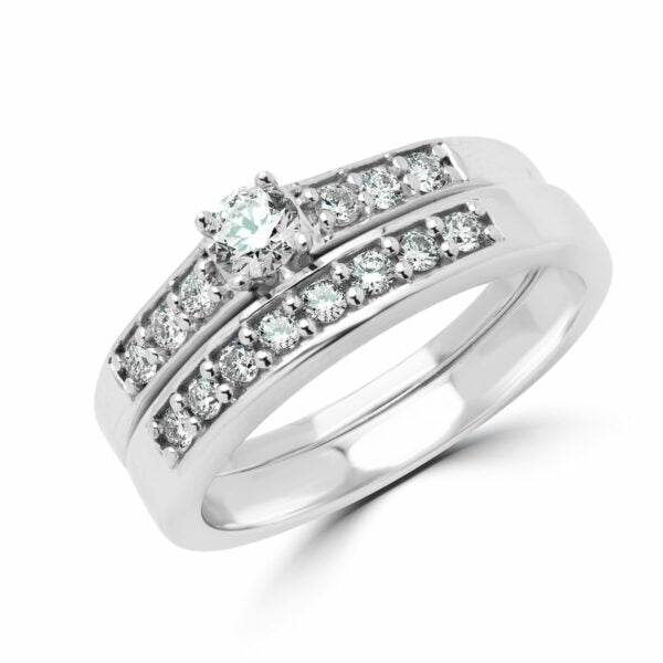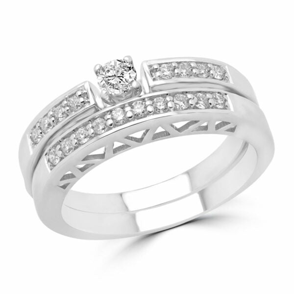 0.46 Carat (ctw) Diamond Engagement Ring Bridal Set in 14k White Gold