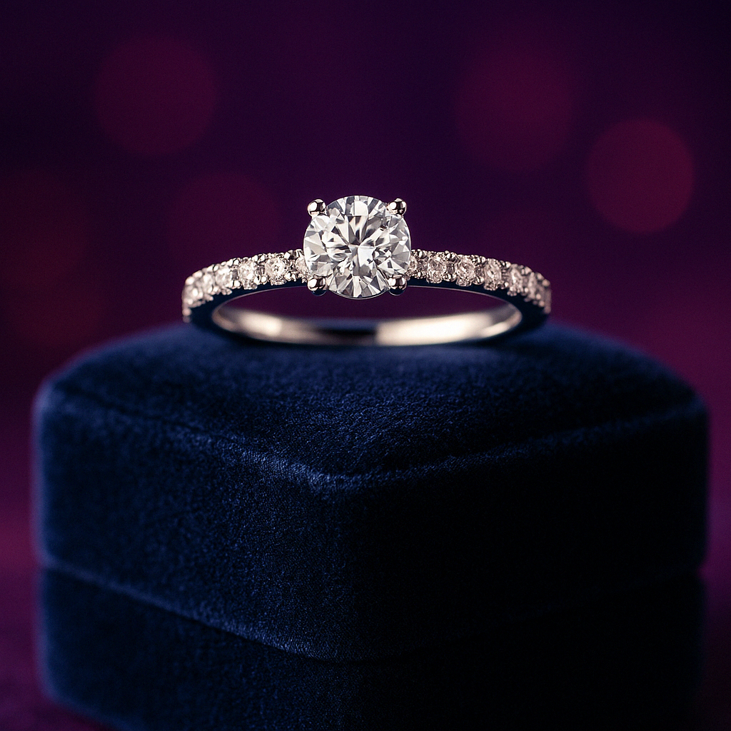 0.51 Carat Center Stone with 0.34 Carat Side Stones (ctw) Lab-Grown Solitaire Diamond Ring in 14k Gold