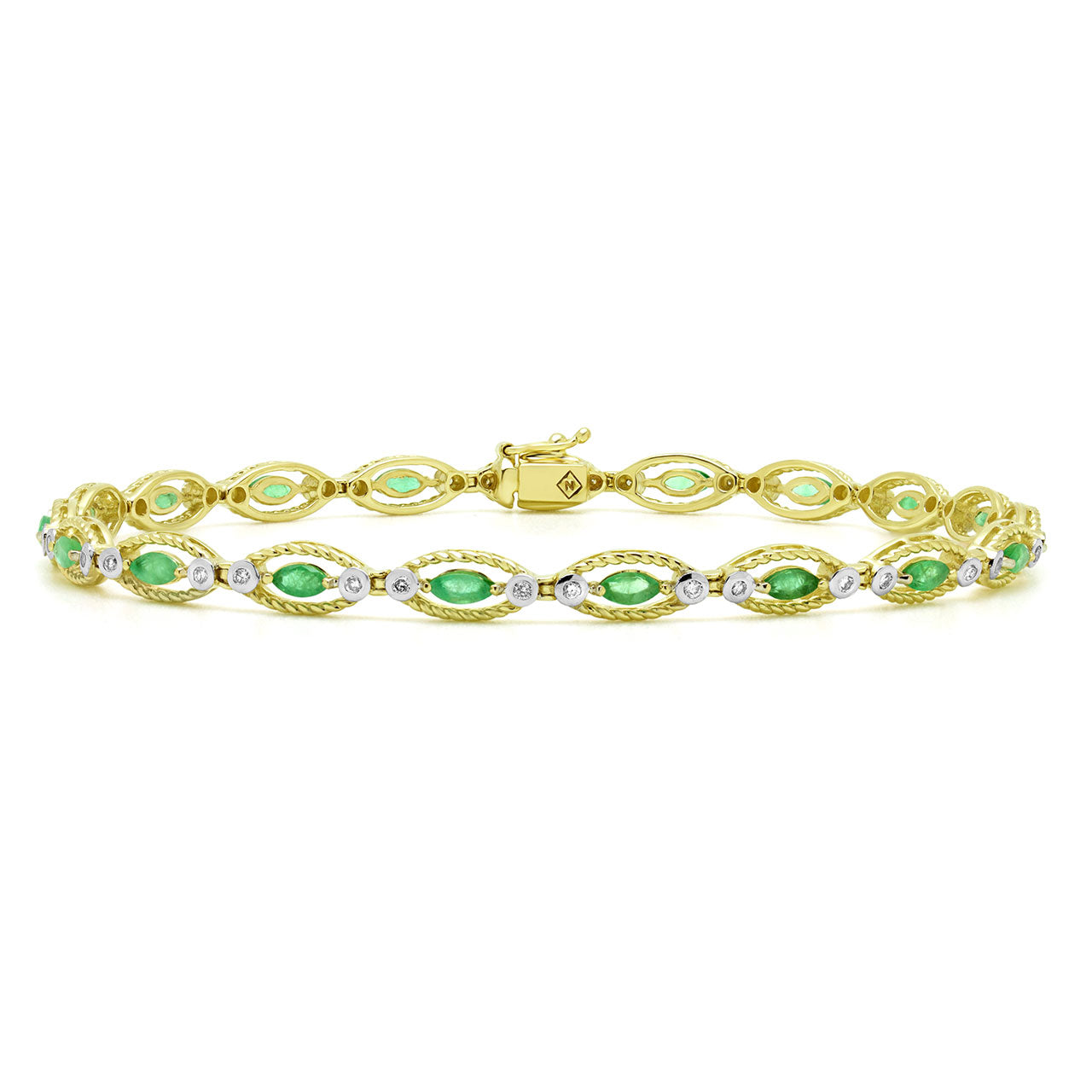 1.3 Carat (ctw) Marquise-Cut Diamond and Emerald Bracelet in 14k Gold