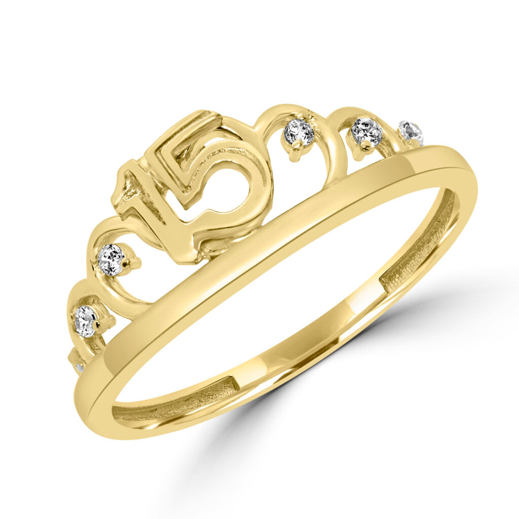 10K Yellow gold 15th anniversary ring with CZ sparkle
