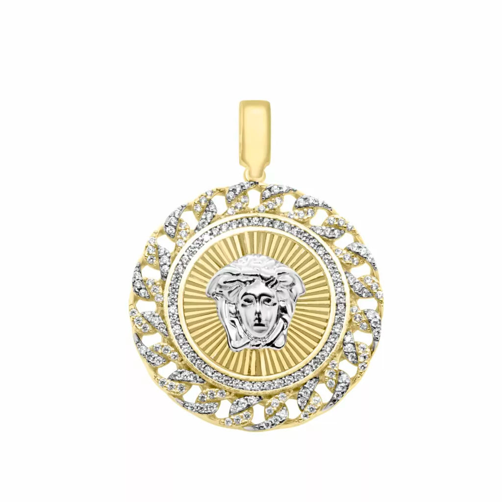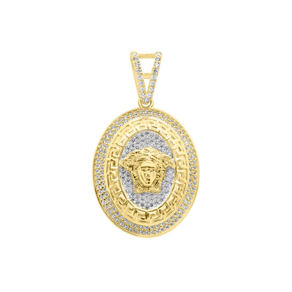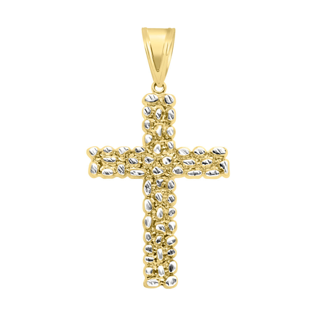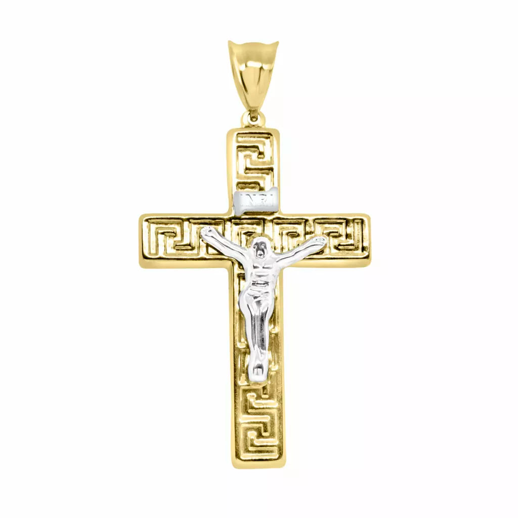 10K White & yellow gold cross greek key design pendant | 16″ chain included