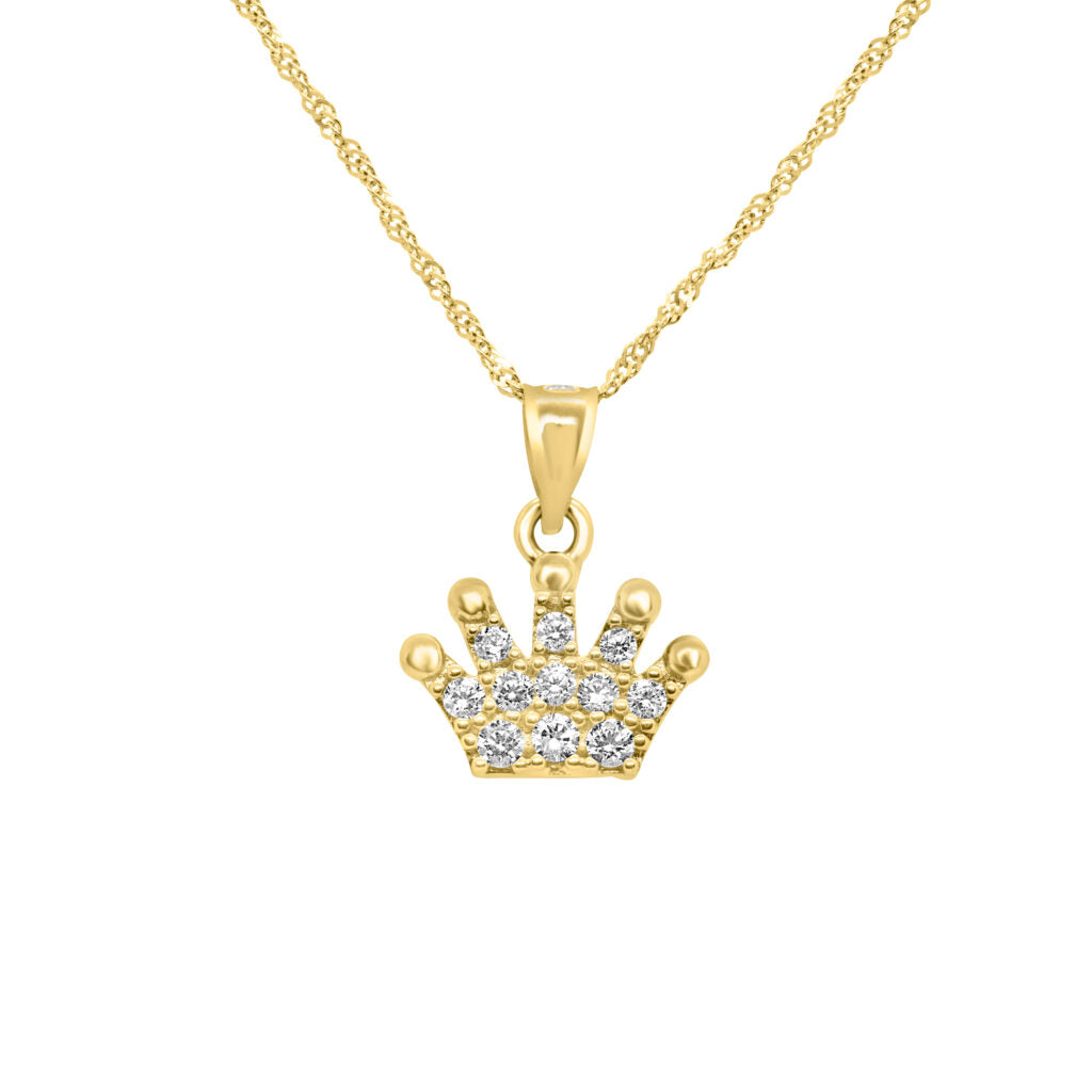 10K Yellow gold crown pendant with CZ | 16″ gold chain included