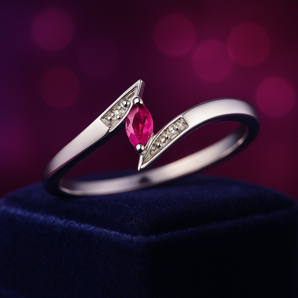 Marquise cut ruby & diamond cocktail ring in 10k white gold