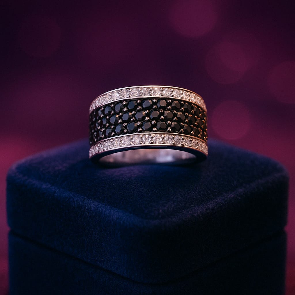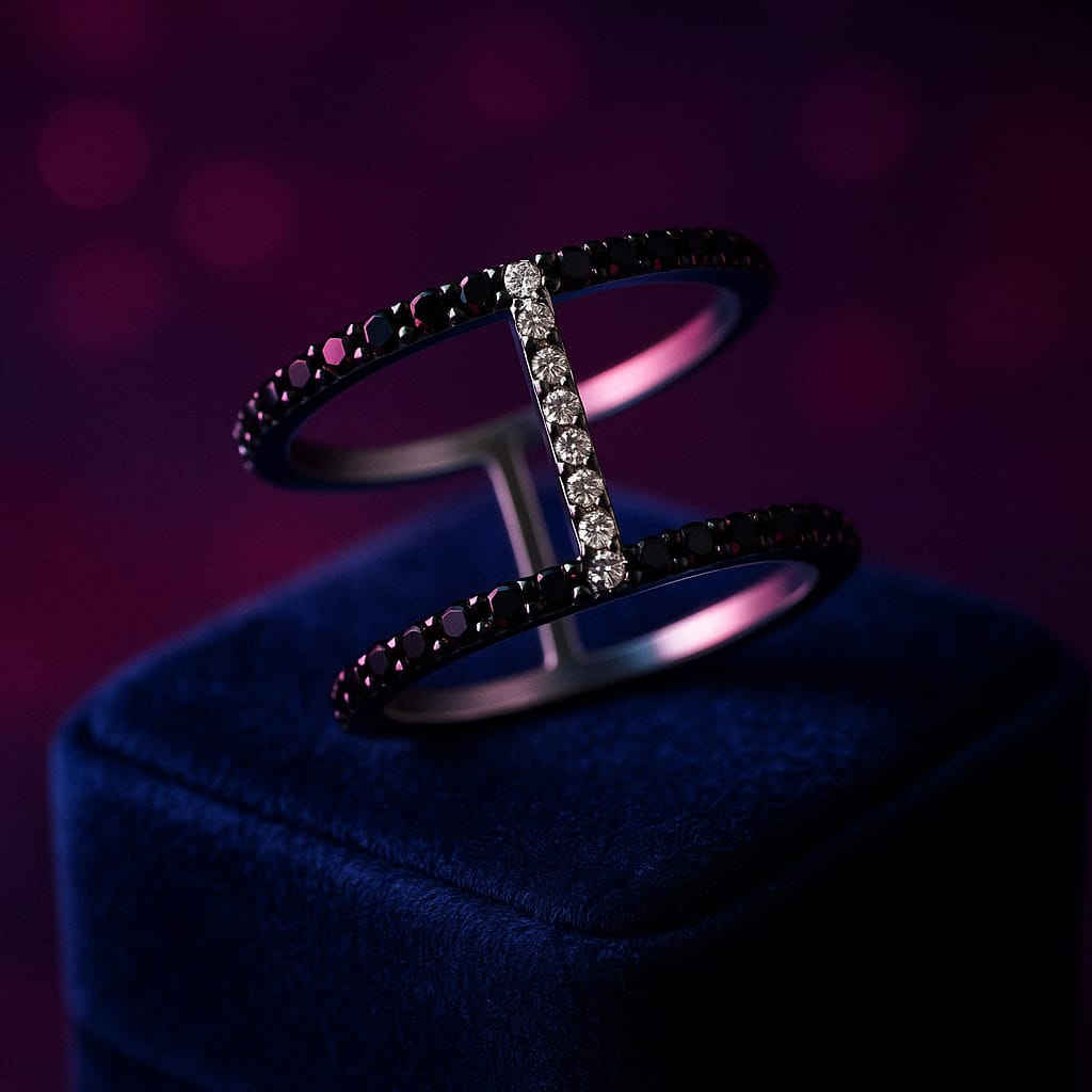 Glittery black & white diamond cocktail ring 1.65 (ctw) 14k gold