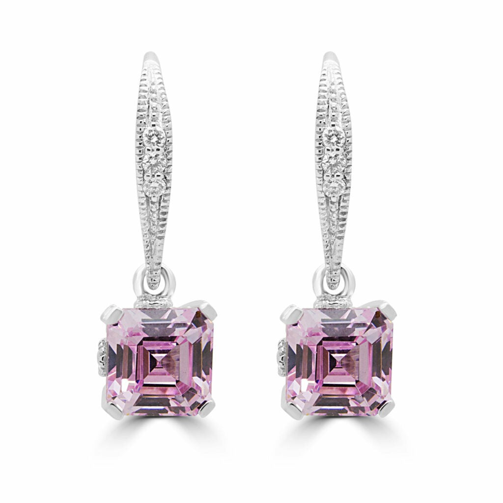Boucles d'oreilles fantaisie en CZ rose et diamant 0,08 (ctw) or blanc 14 carats