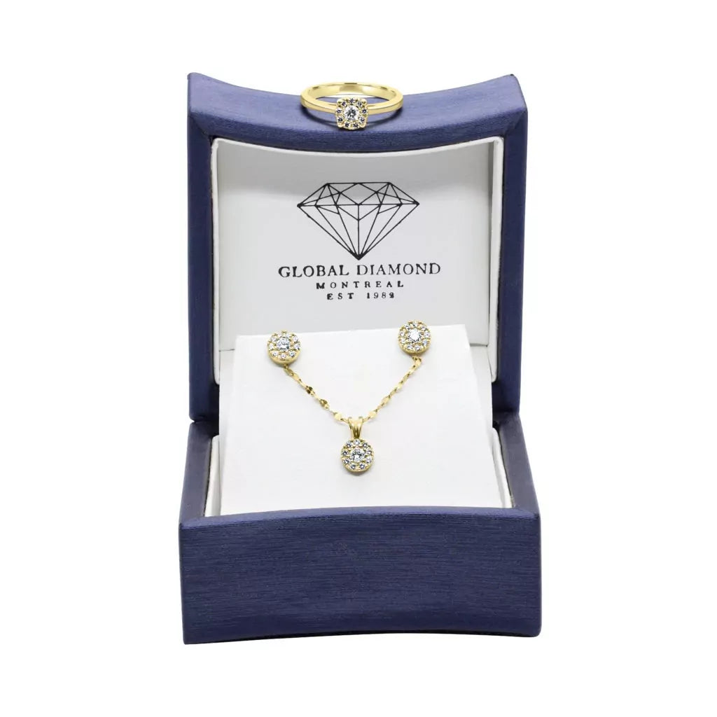 Ensemble pendentif, boucles d'oreilles et bague en diamant halo 0,82 (ct) en or 14 carats