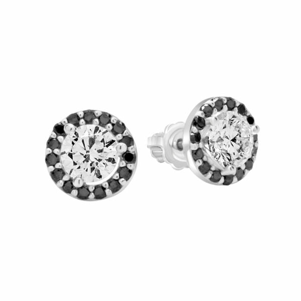 Boucles d'oreilles halo diamant noir et blanc 0,95 (ct) en or 14 carats