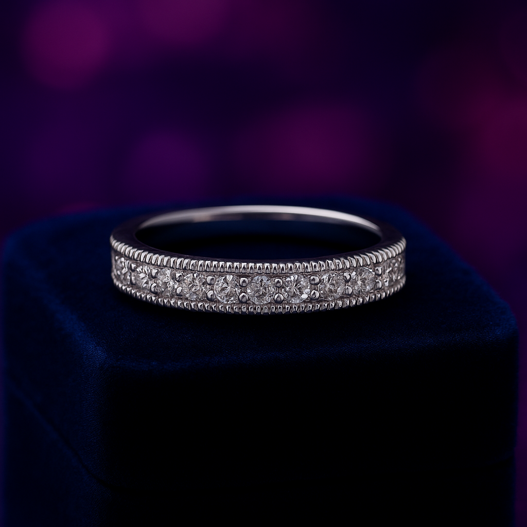 Bague diamant anniversaire Milgrain 0,30 (ct) en or blanc 14 carats