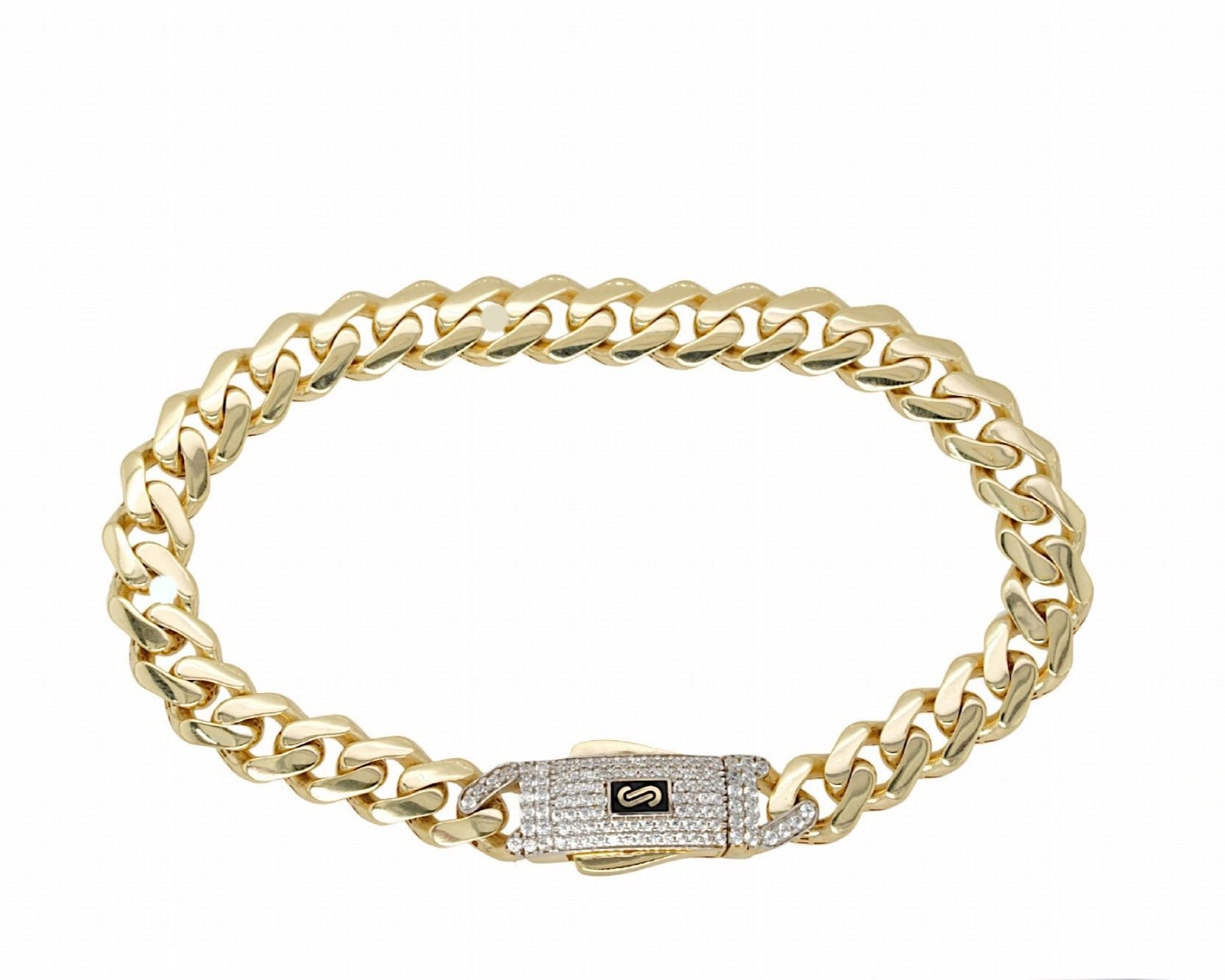 Monaco Cuban link bracelet 8″ 7.7mm 10K Yellow Gold with CZ