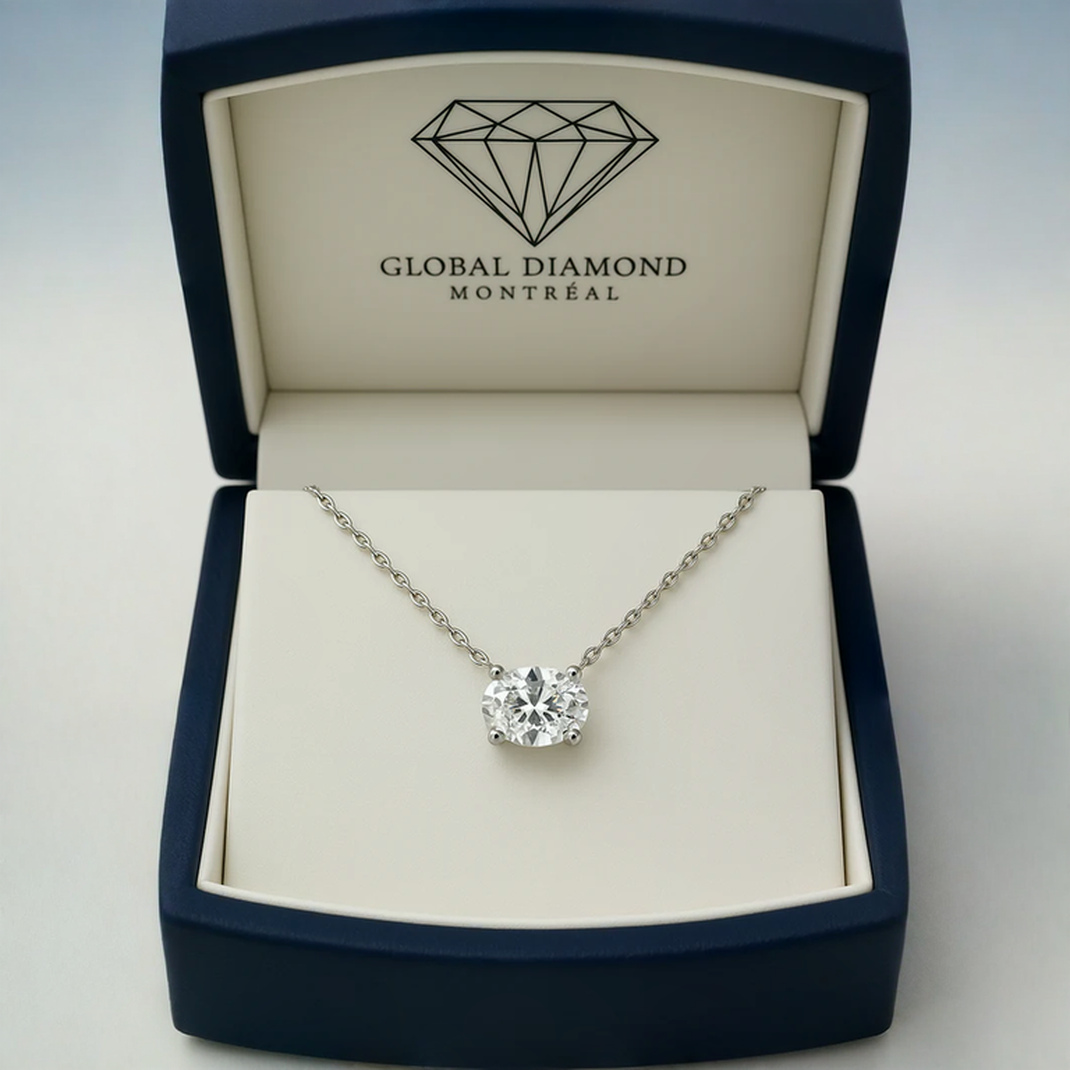 Pendentif diamant cultivé en laboratoire de 0,71 carat (ctw) en or blanc 14 carats, scintillant d'éclat