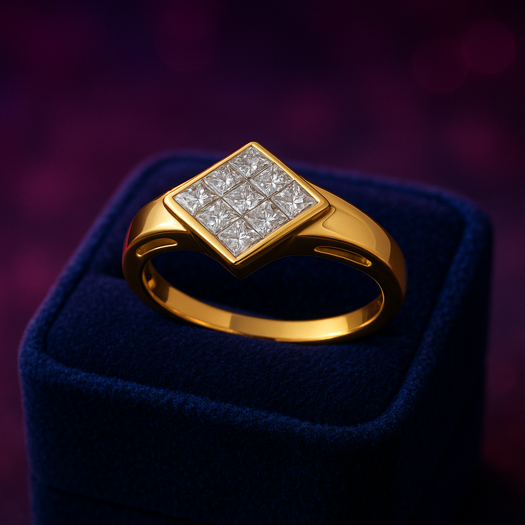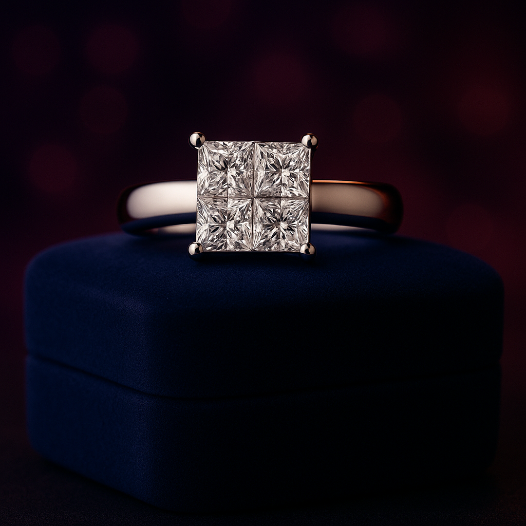 Bague cocktail diamant taille princesse 0,95 (ct) en or jaune 18 carats