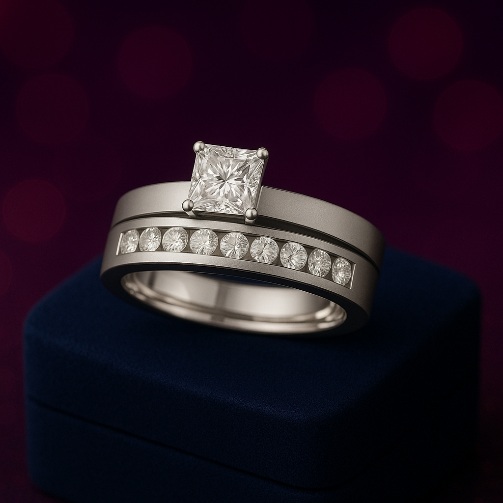 Bague de fiançailles semi-éternité taille princesse, ensemble 1.01 (ctw)