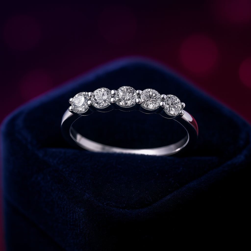 Jolie bague semi-éternité 5 diamants 0,40 (ct) en or 14 carats