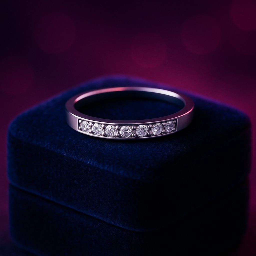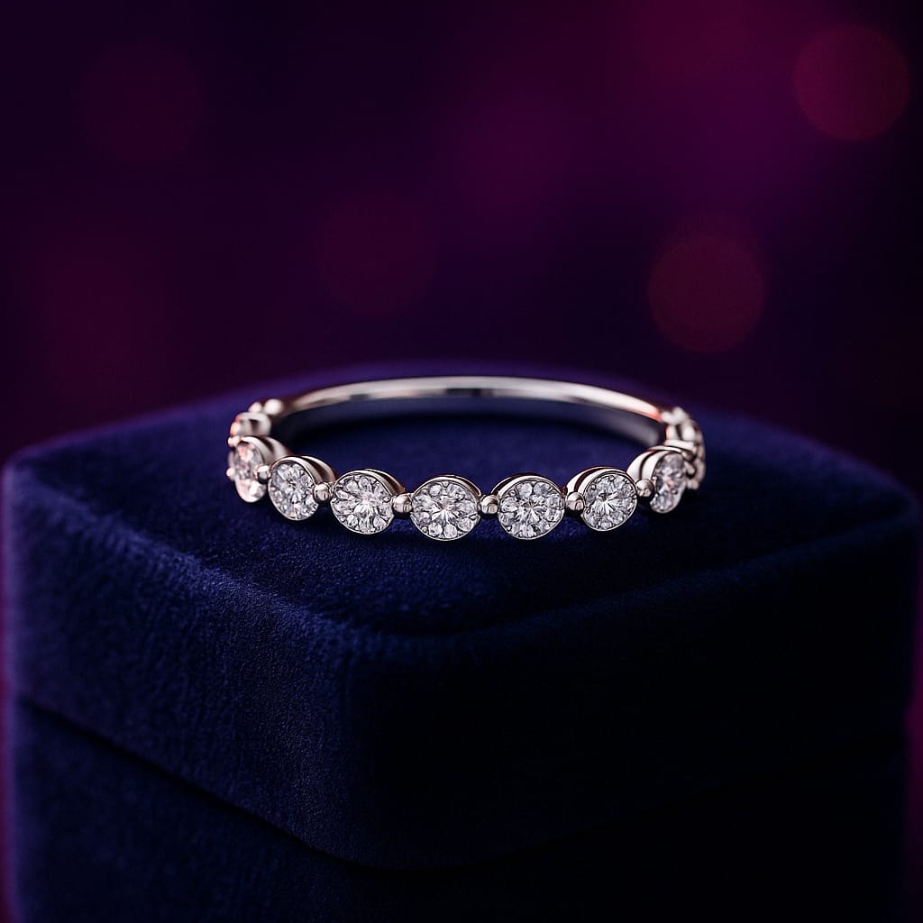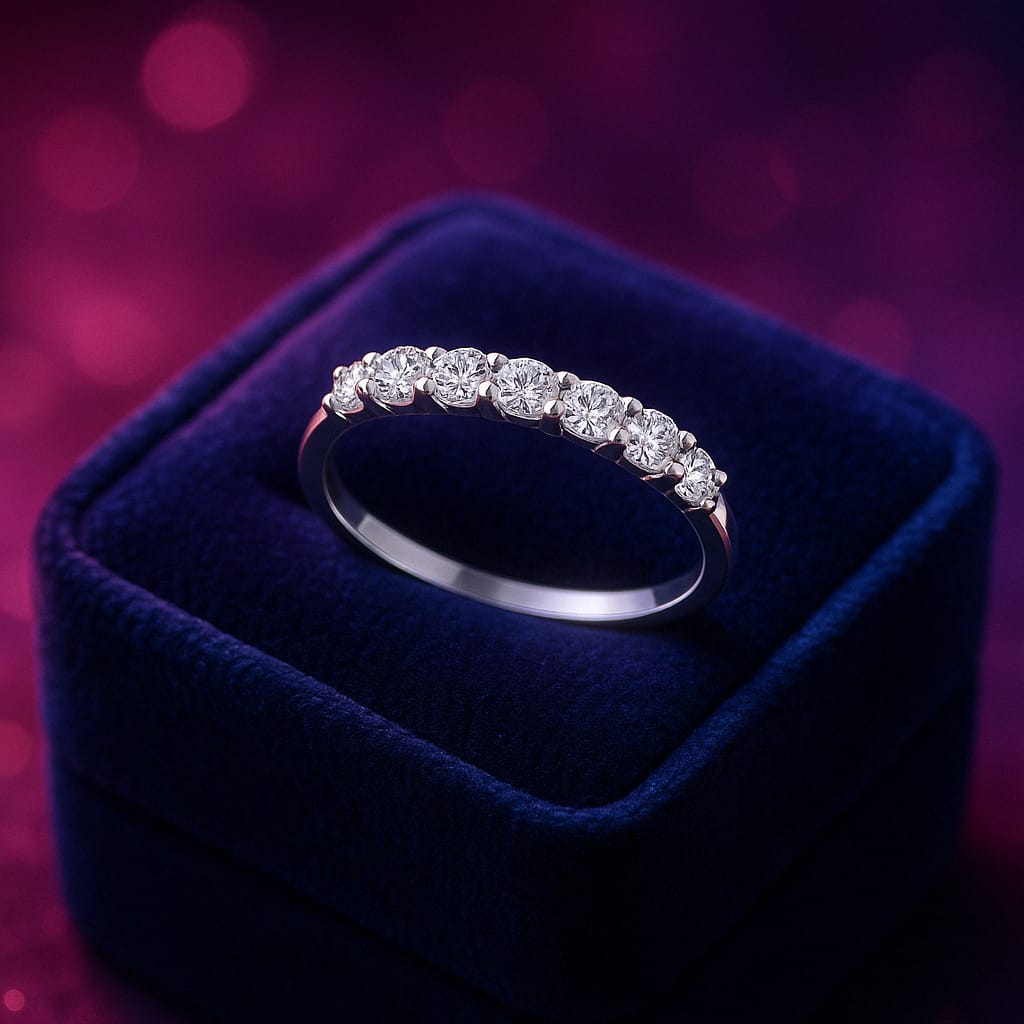 Bague semi-éternité 8 diamants taille ronde 0,16 (ct) en or blanc