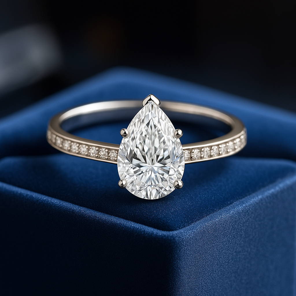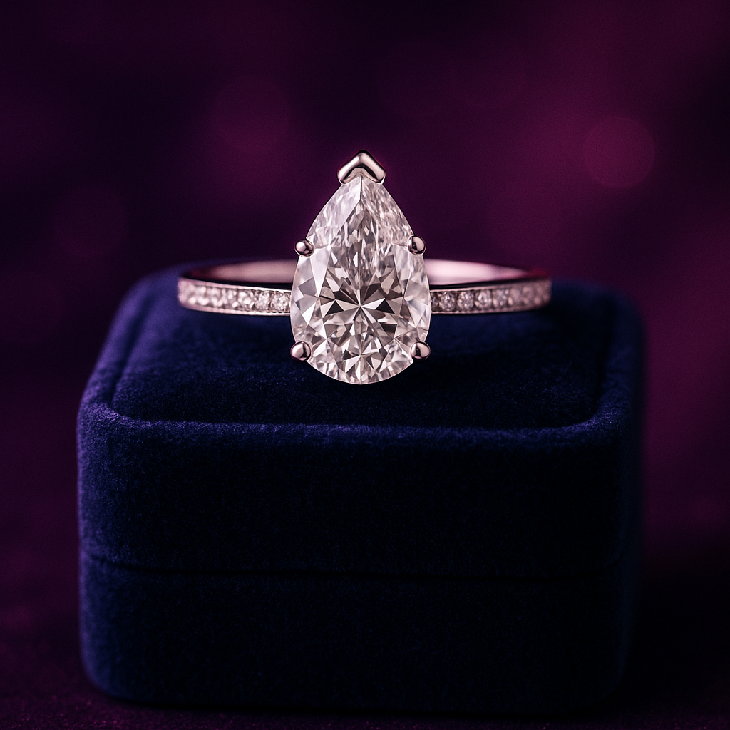 Bague de fiançailles cultivée en laboratoire, taille poire, 1,29 carat (ctw) en or 14 carats