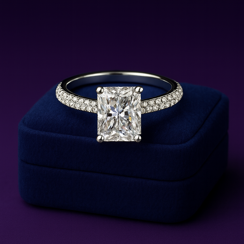 Diamant solitaire cultivé en laboratoire taille radiant 1,77 (ctw) en or 14 carats