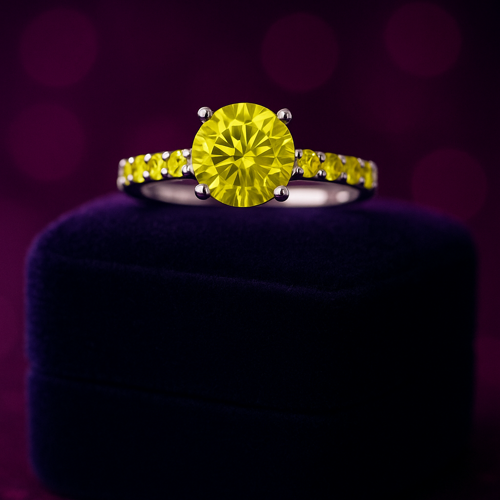 Bague de fiançailles solitaire en diamant canari unique en son genre