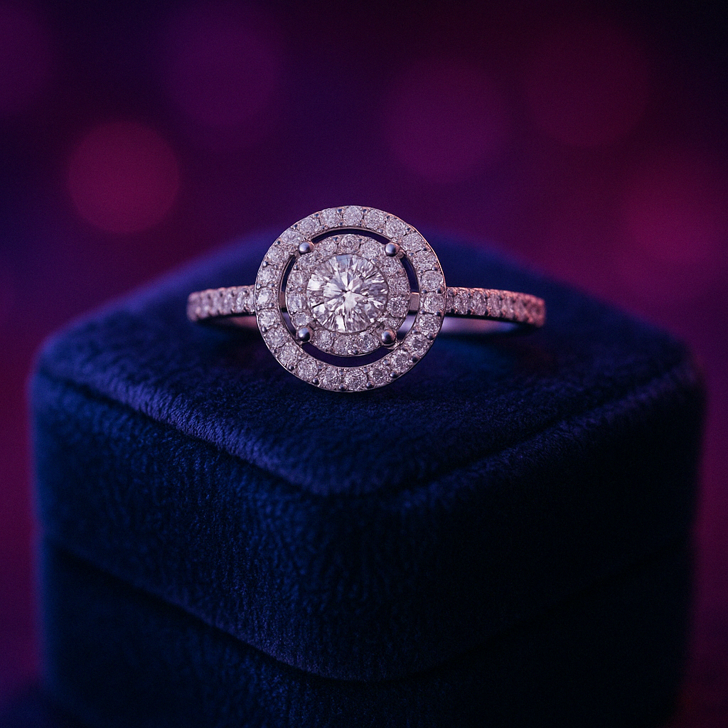 Voler sa bague en diamant halo de coeur (0,72 ct) en or blanc 14 carats