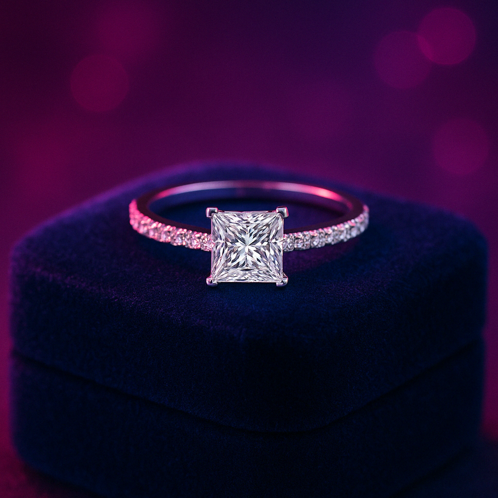 Bague solitaire en diamant de laboratoire taille princesse 1,36 (ctw) en or 14 carats