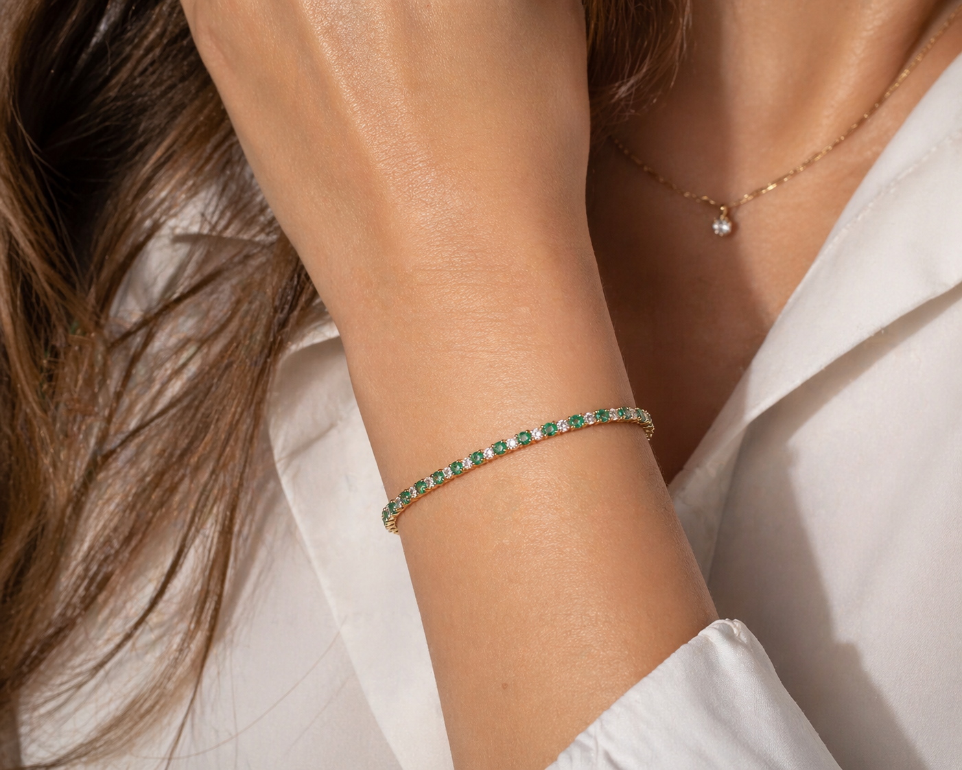 Bracelet diamant et émeraude taille marquise de 1,3 carat (ctw) en or 14 carats