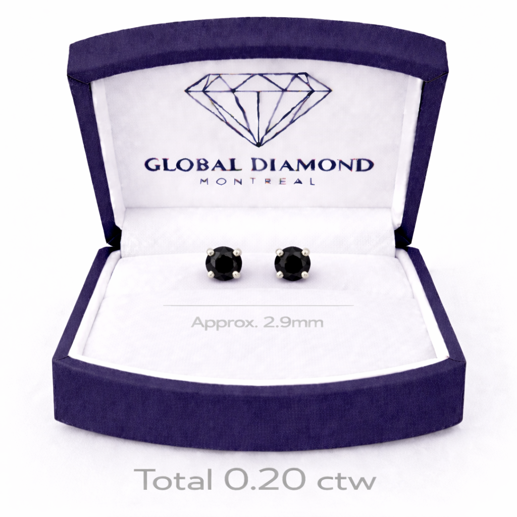 Boucles d'oreilles à tige en diamant noir 0,20 (ct) en or blanc 14 carats