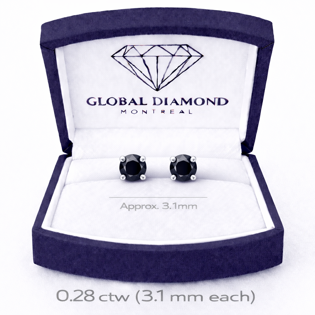 Boucles d'oreilles à tige en diamant noir 0,28 (ct) en or blanc 14 carats