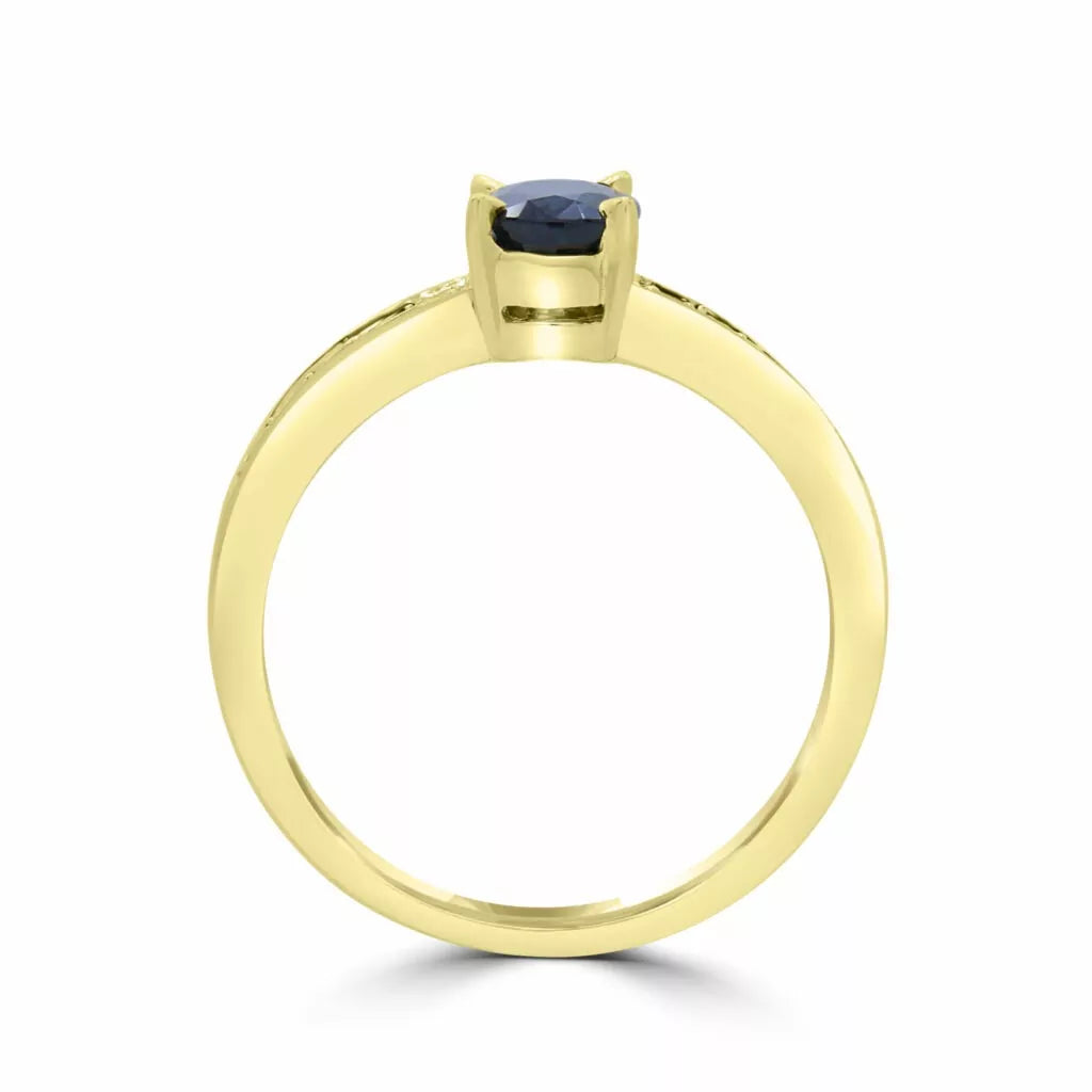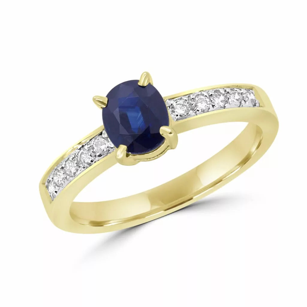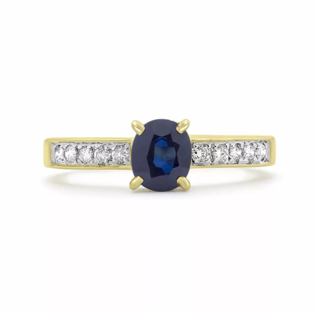 Bague saphir bleu vif et diamant 0,68 (ct) en or jaune 10 carats