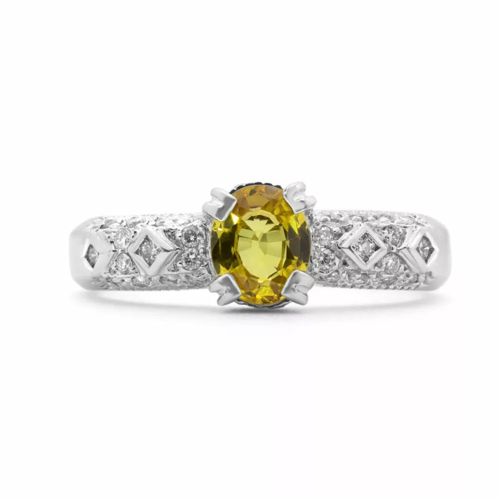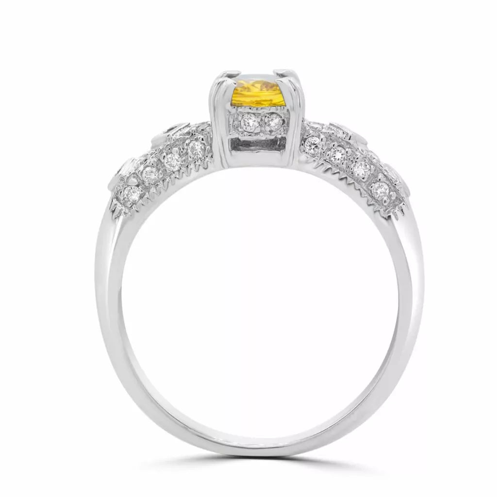 Bague de fiançailles saphir jaune vif 0,70 (ct) en or blanc 10 carats