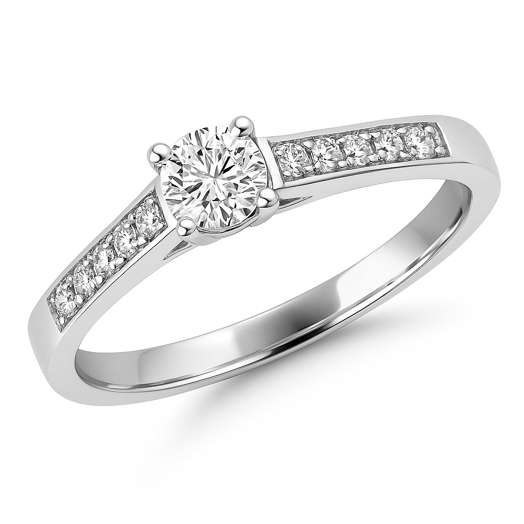 Bague de fiançailles diamant brillant rond 0,45 (ct) en or blanc 14 carats
