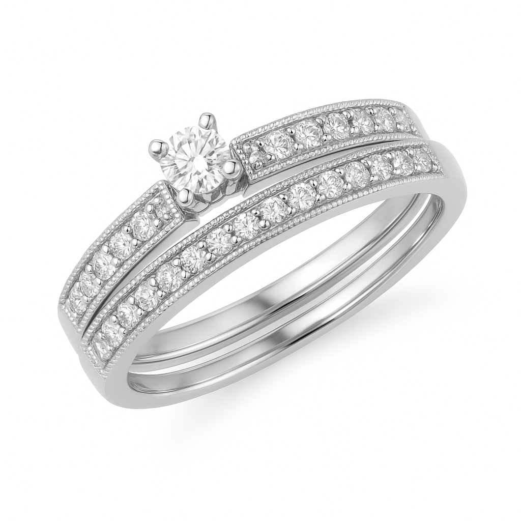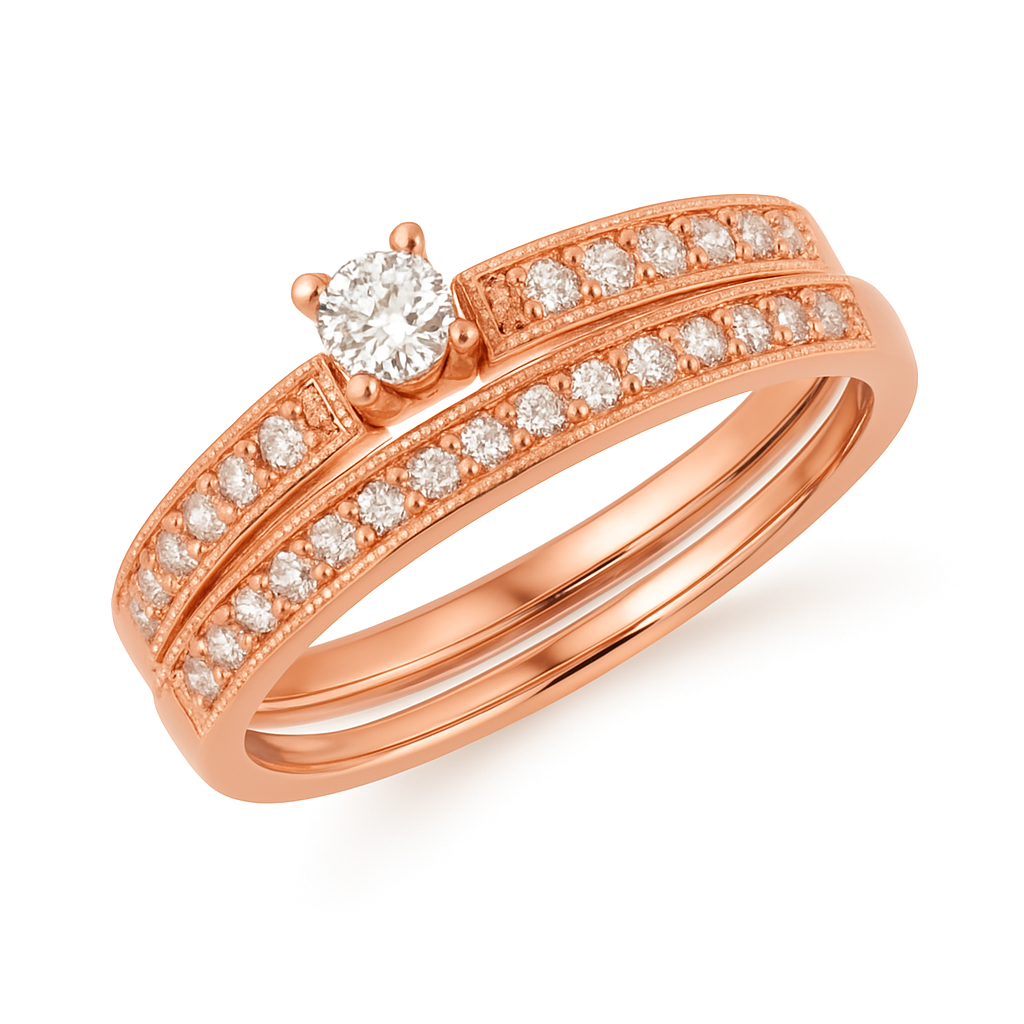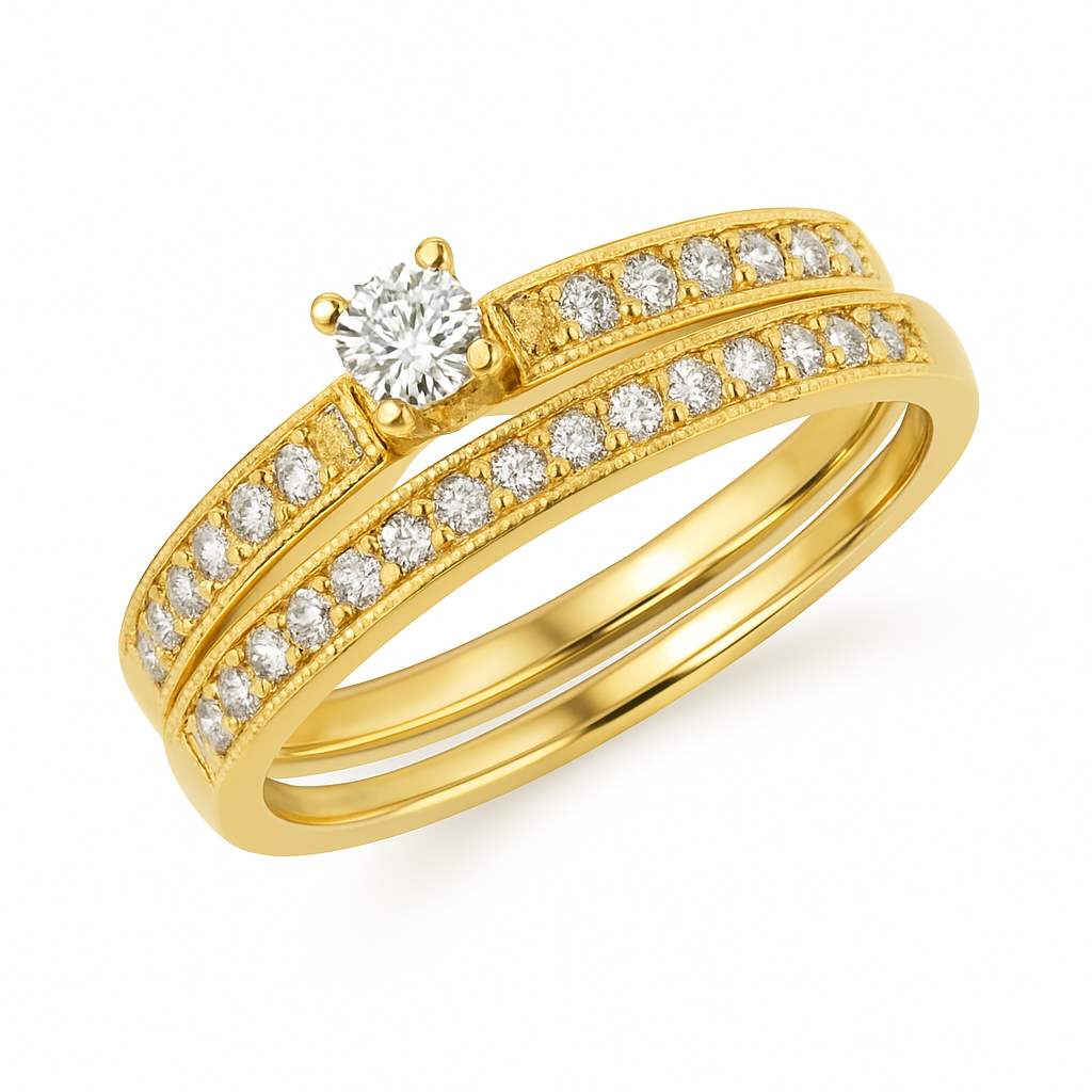 Bague de fiançailles en diamant scintillant, ensemble de mariée 0,53 (ct) en or 14 carats