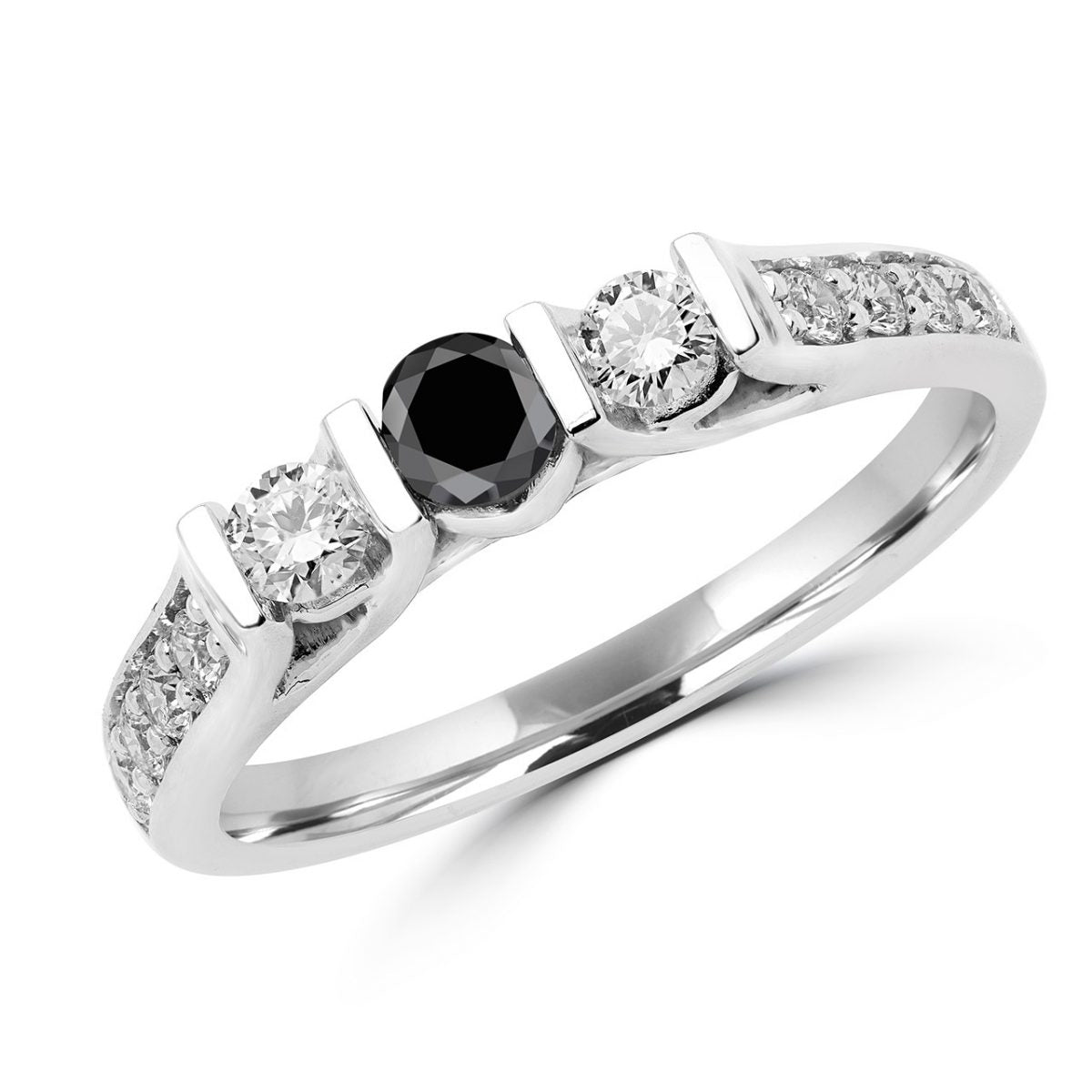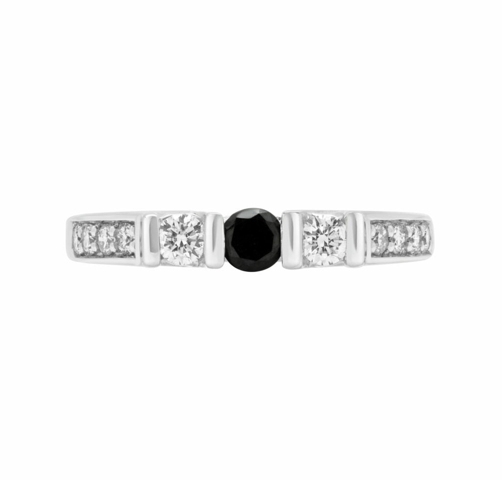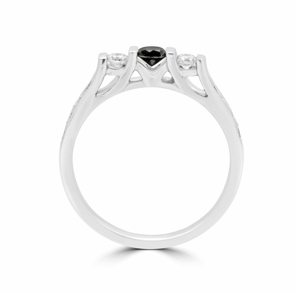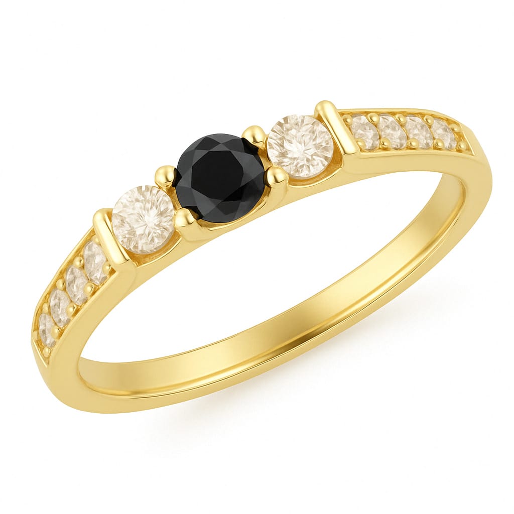Bague diamant noir et blanc à 3 pierres 0,46 (ct) en or 14 carats