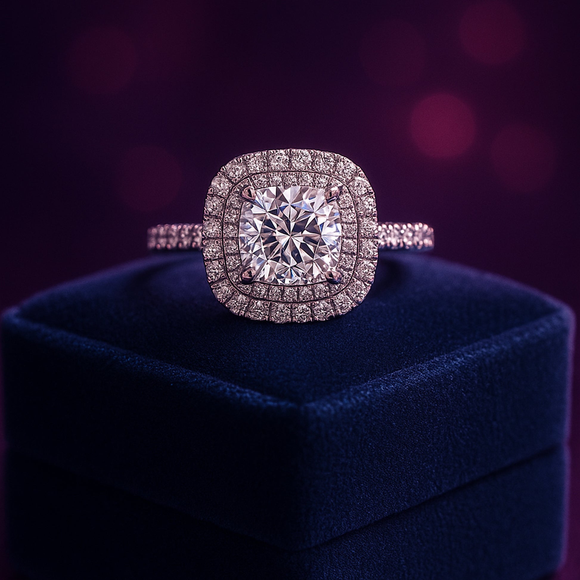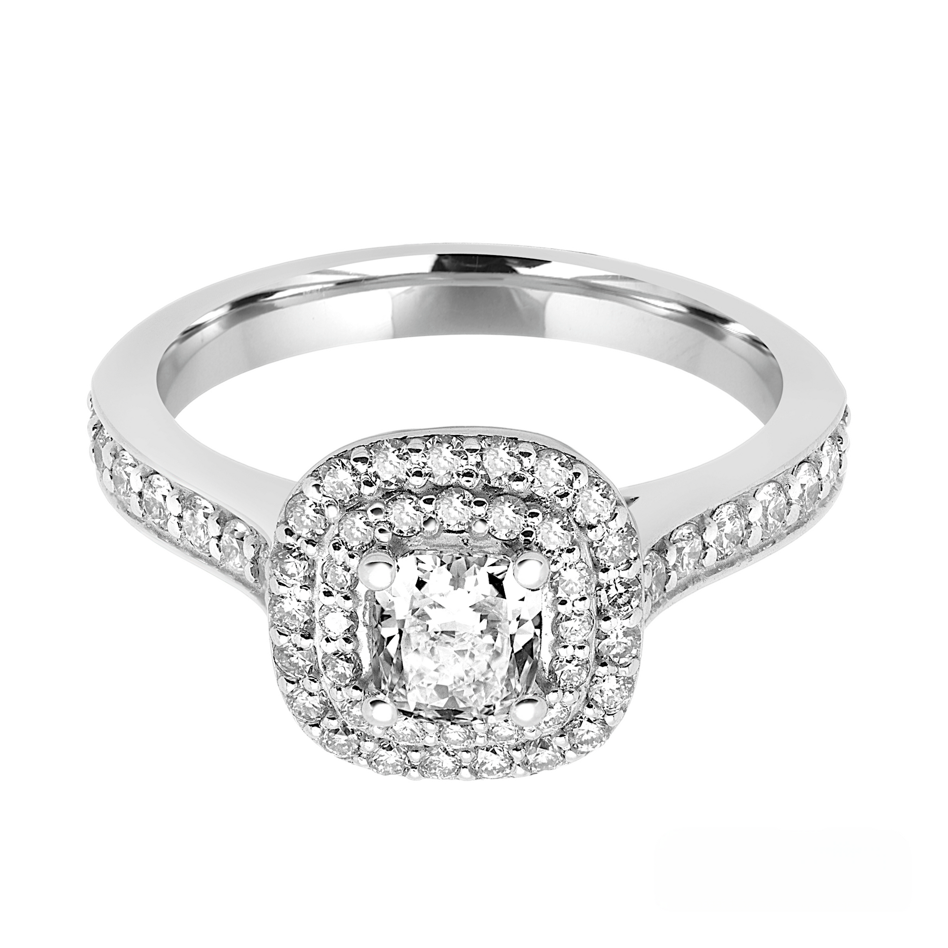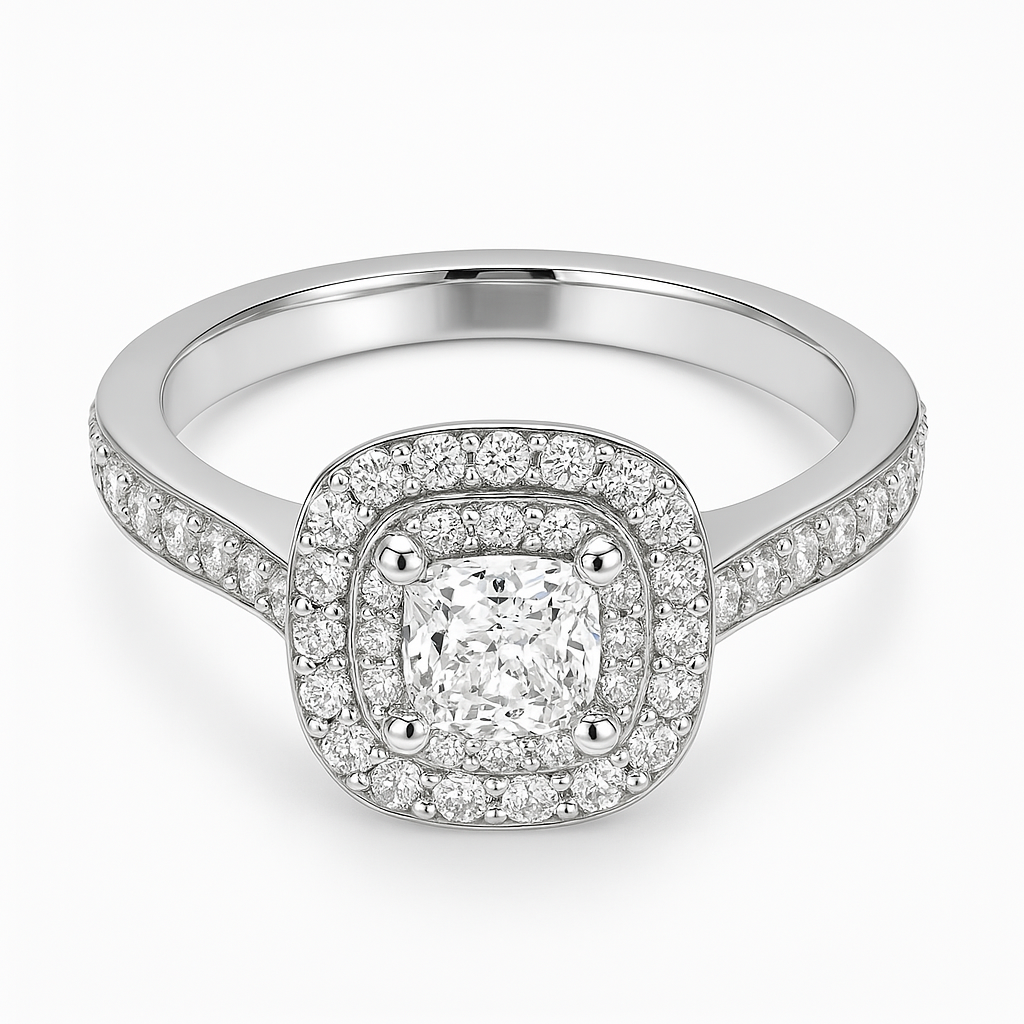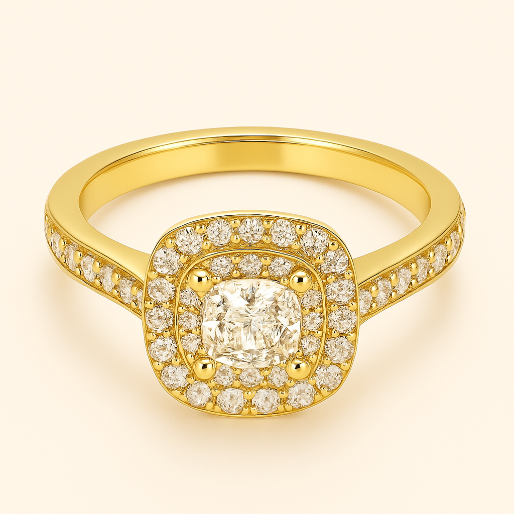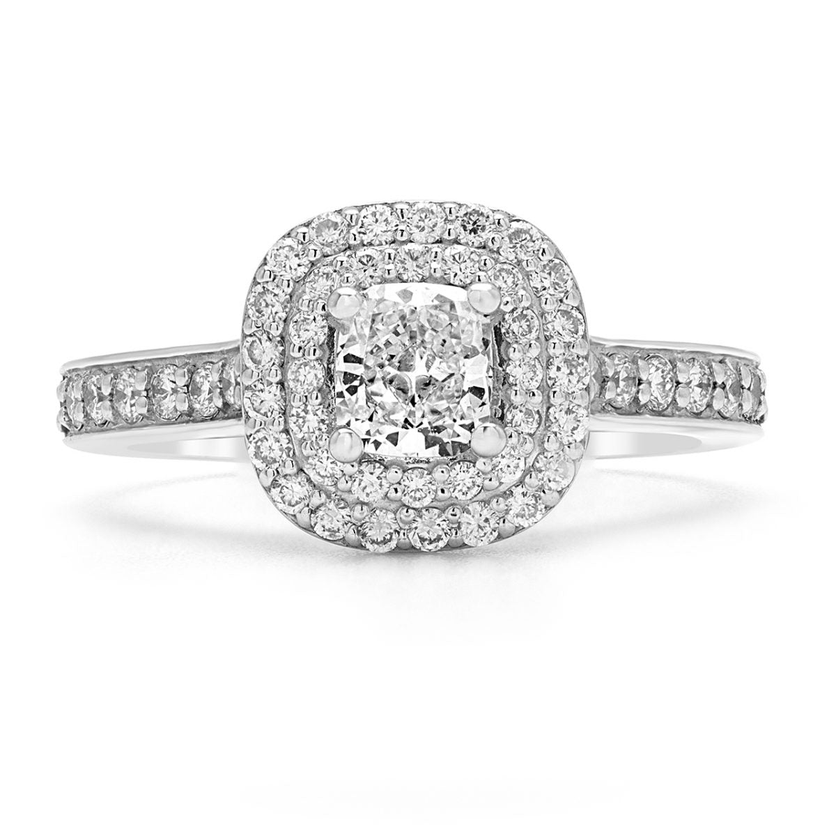 Bague halo de diamants synthétiques taille coussin 1,06 (ctw) en or 14 carats