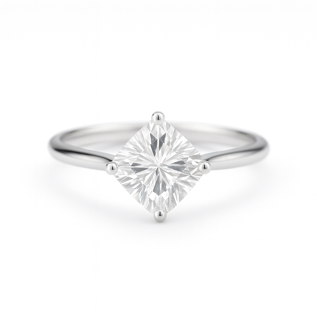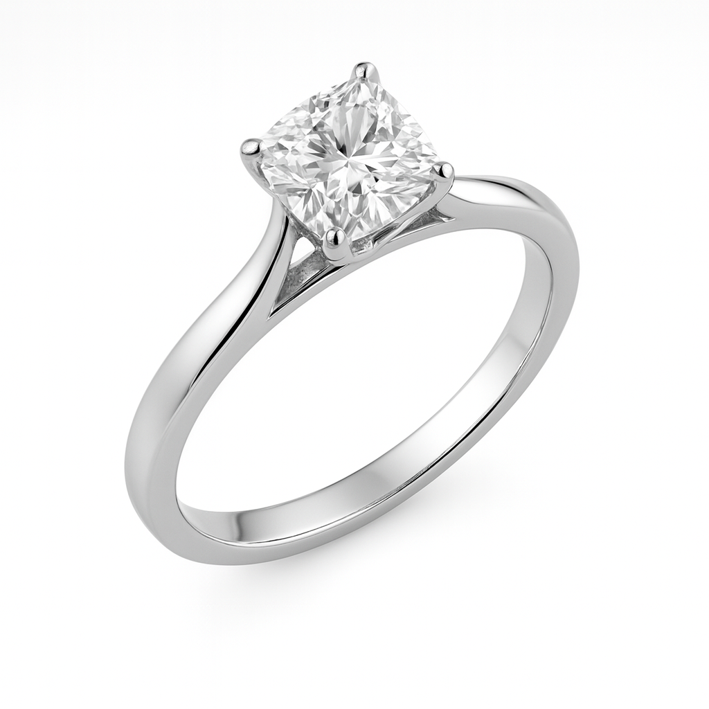 Bague solitaire cultivée en laboratoire taille coussin 1,00 (ctw) en or super blanc 19 carats