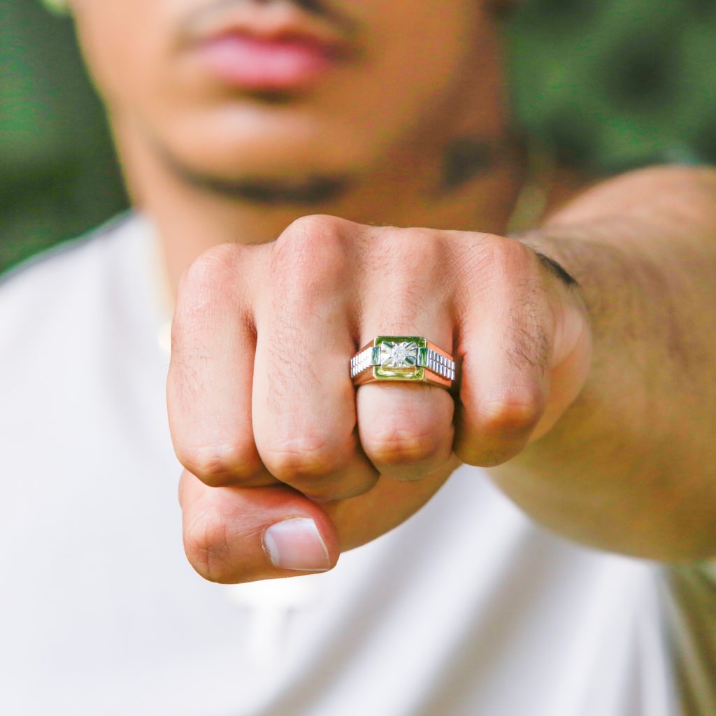 Bague surélevée en diamant pour homme 0,45 (ct) en or jaune 10 carats