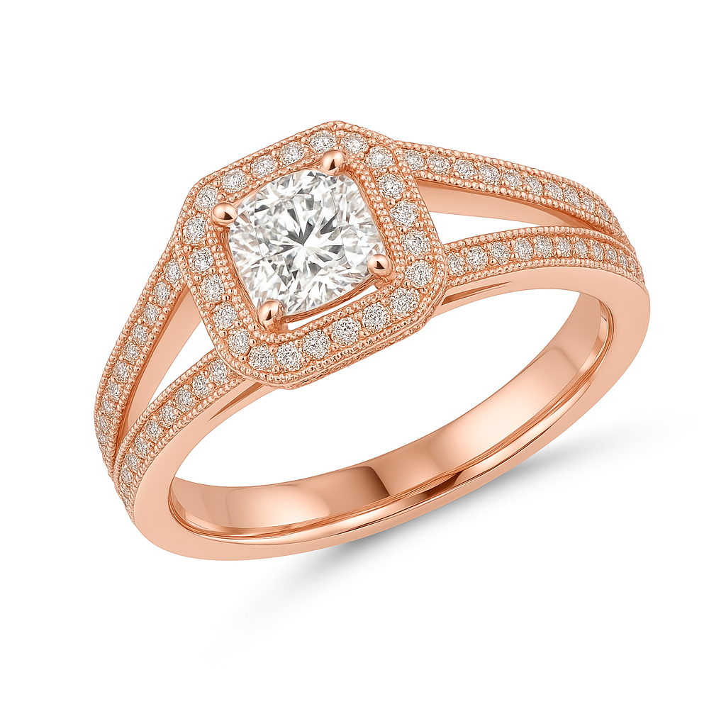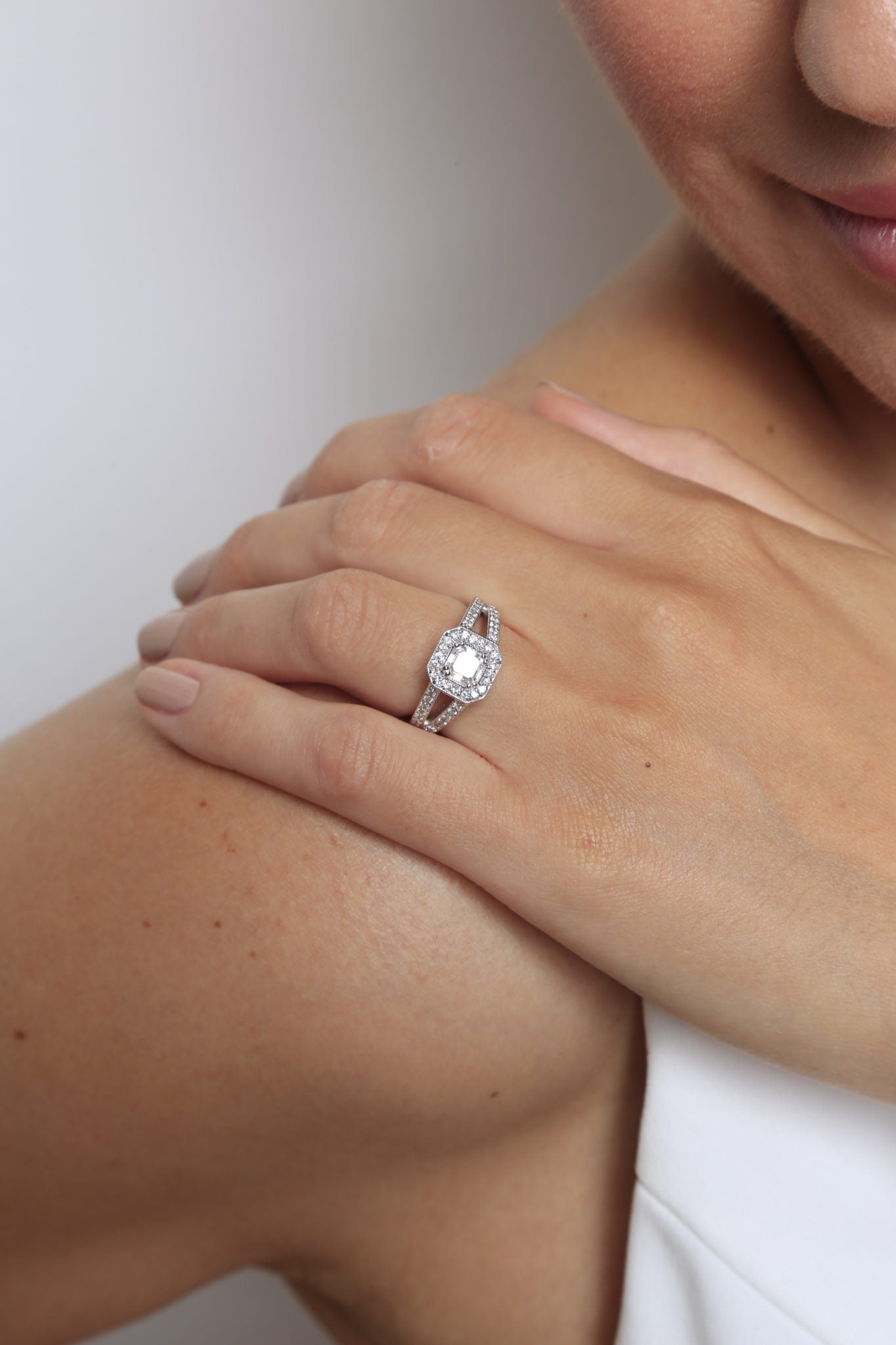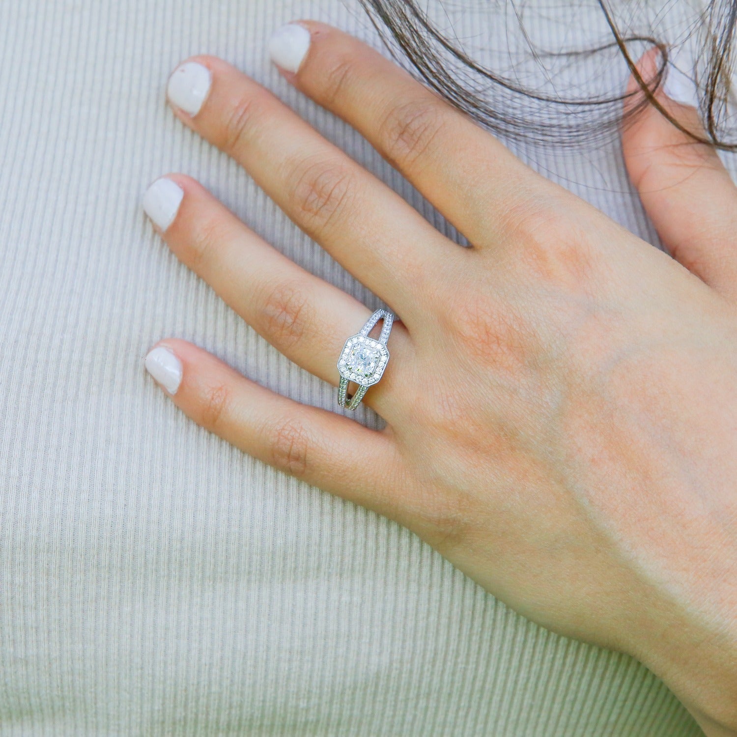 Bague halo cultivée en laboratoire taille coussin éternel 1.11 (ctw) or 14 carats