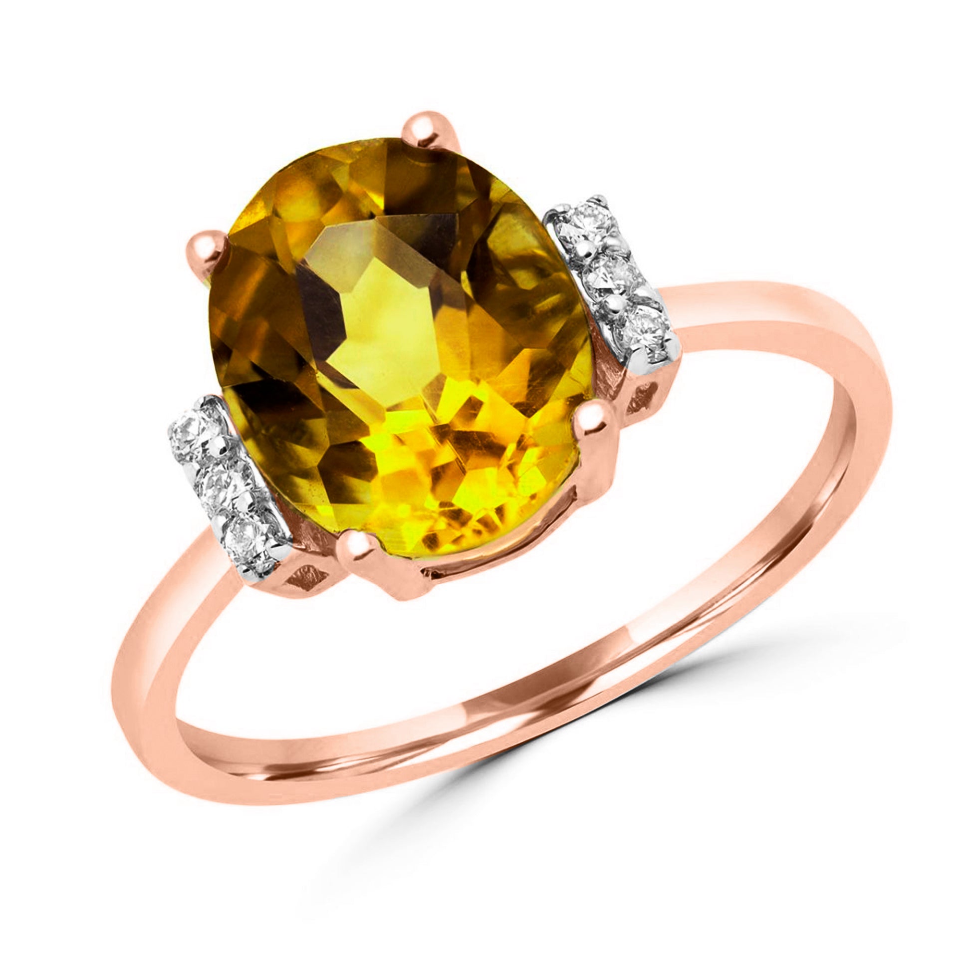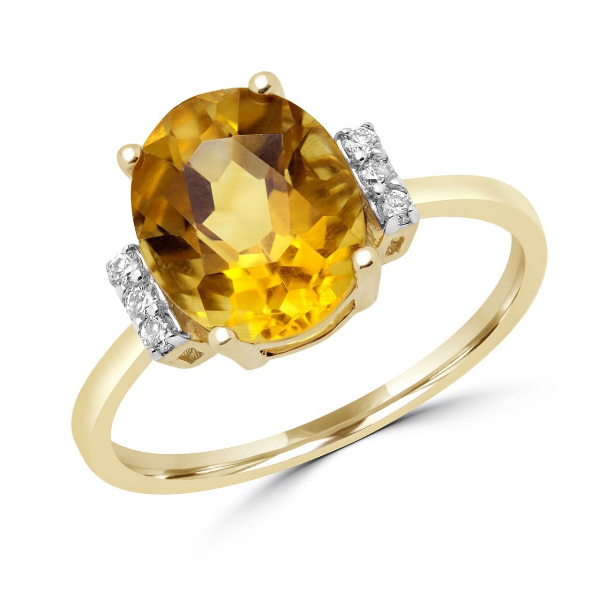 Citrine ovale fantaisie et diamant en or jaune
