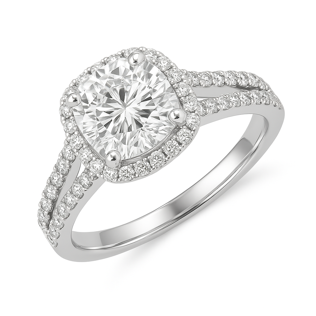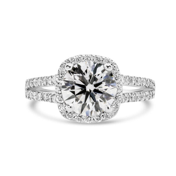 Bague de fiançailles halo de diamants cultivés en laboratoire de 2,57 carats (ct au total) en or blanc 14 carats