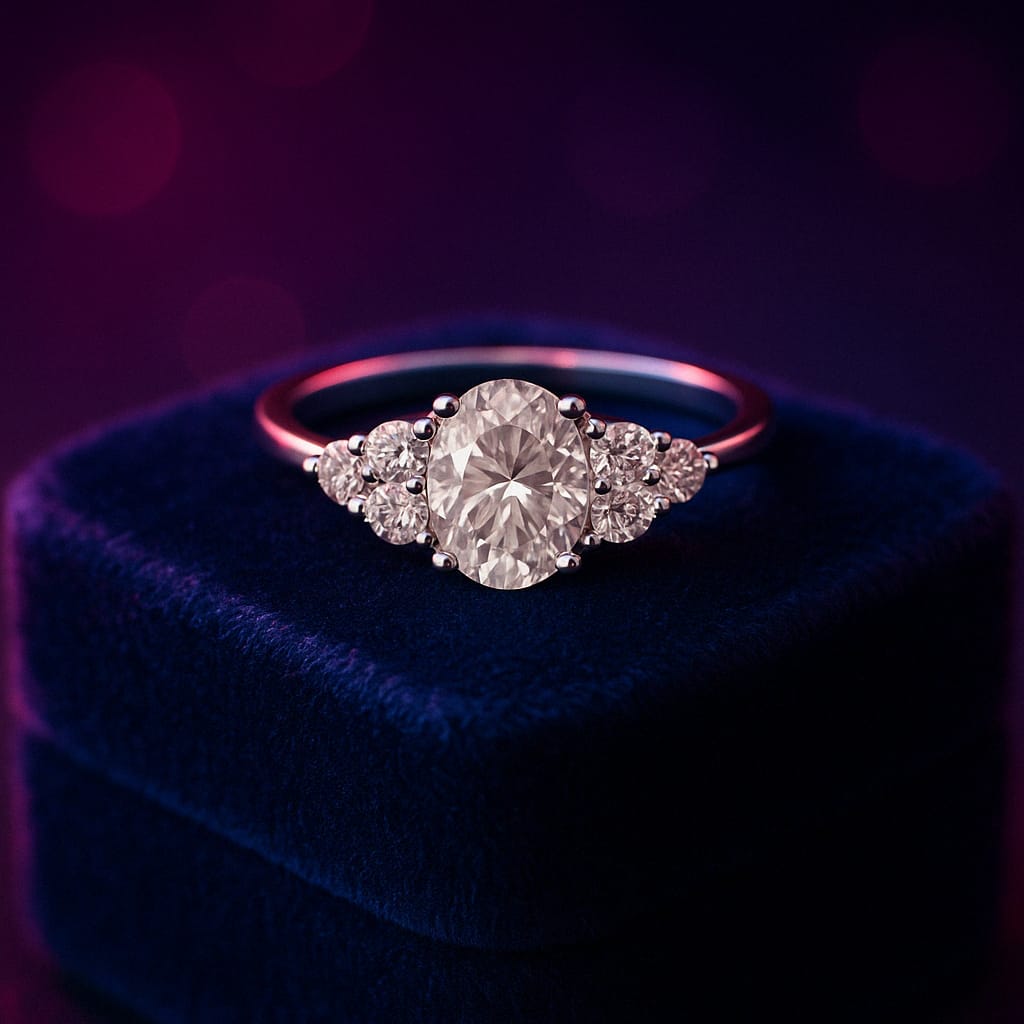 Bague de fiançailles ovale dream CZ et diamant 0,36 (ctw) or blanc 14 carats