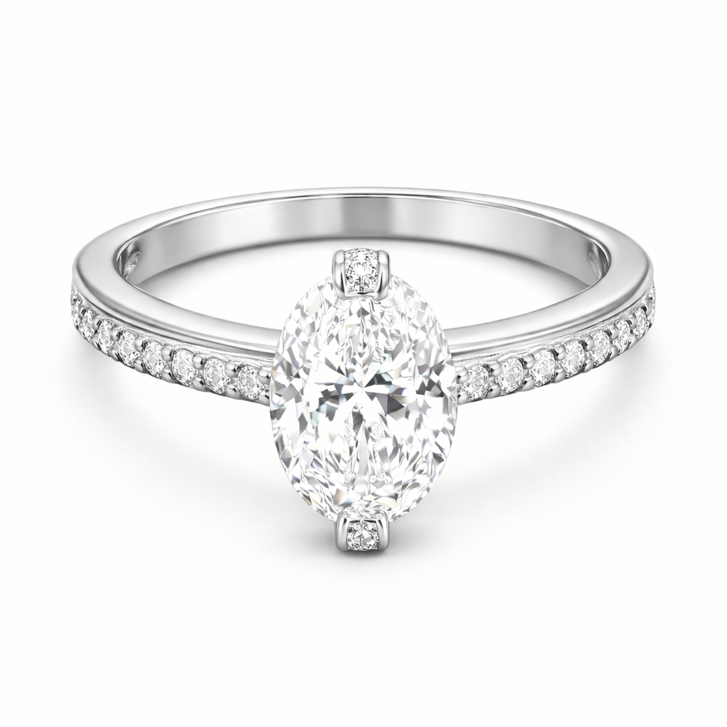 Bague solitaire ovale en diamant de laboratoire 2,26 (ct) VS1 E en or 14 carats