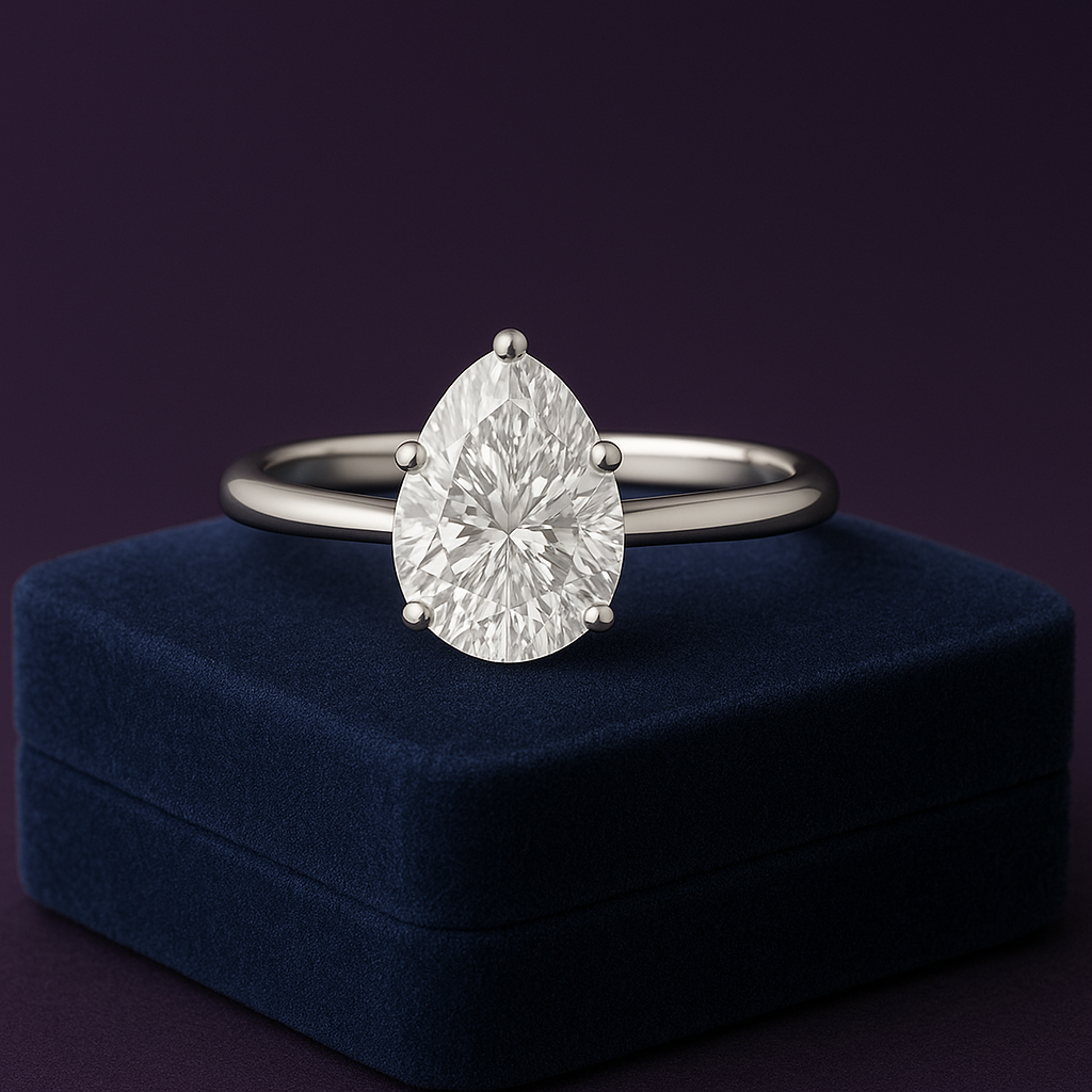 Bague solitaire diamant cultivé en laboratoire taille poire 0,70 (ct) en or 14 carats