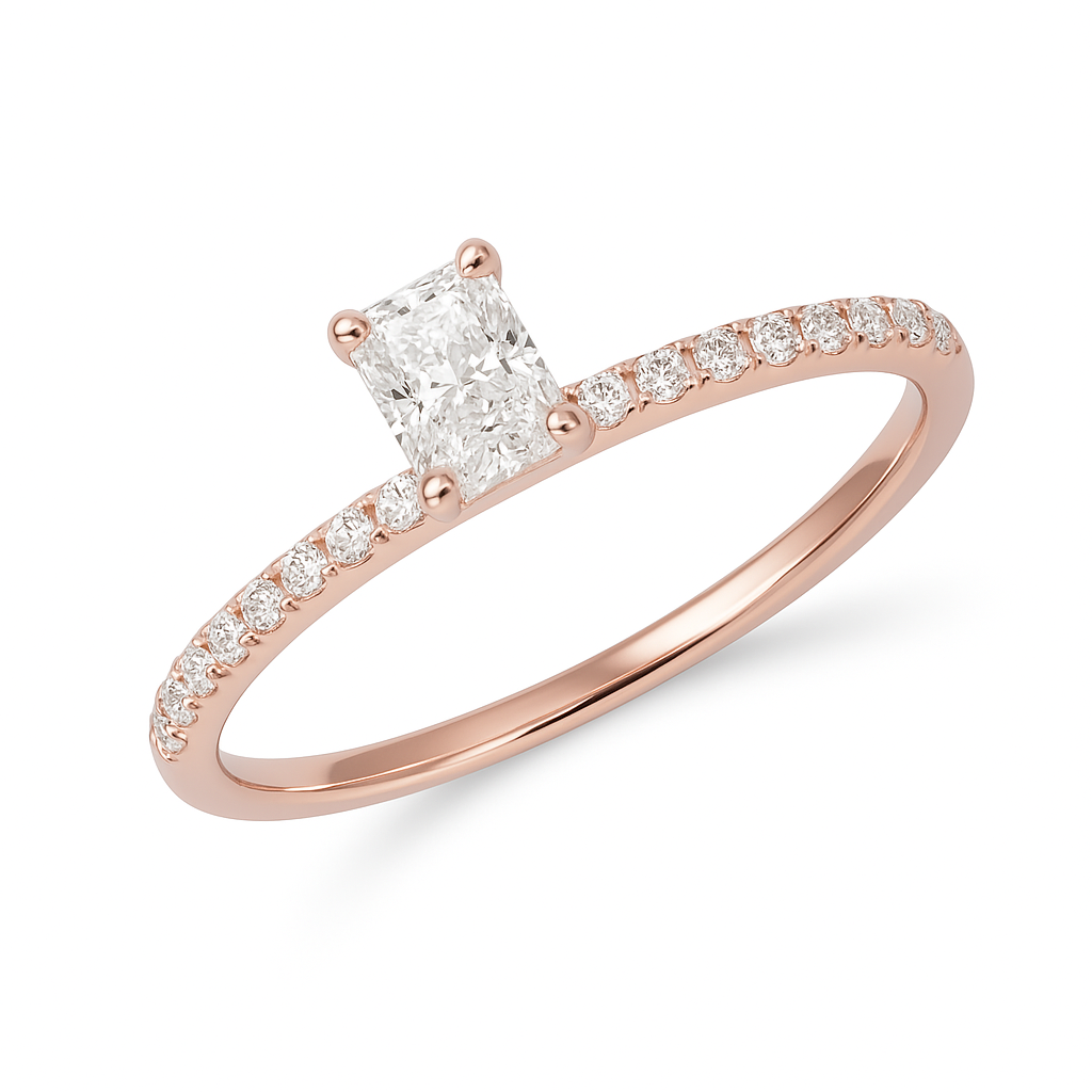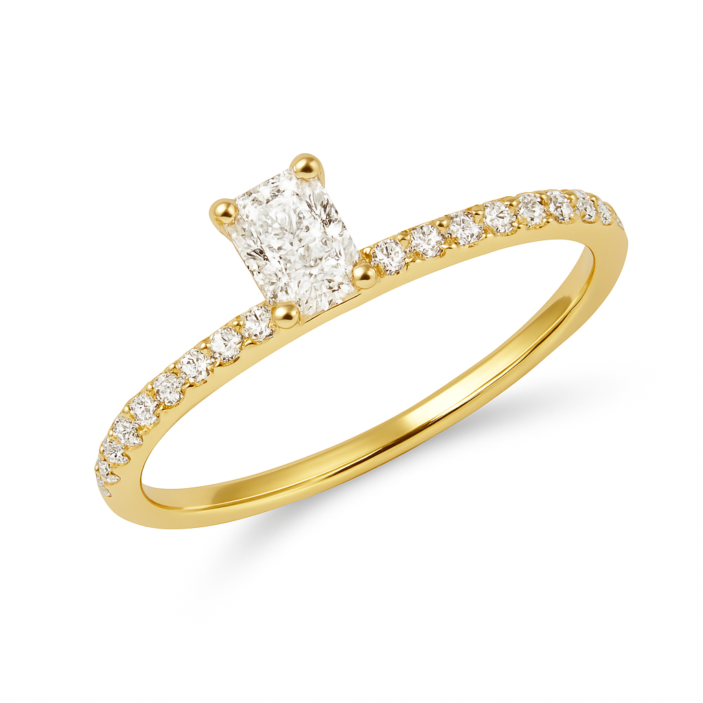 Diamant solitaire cultivé en laboratoire taille radiant 0,69 (ct) en or 14 carats
