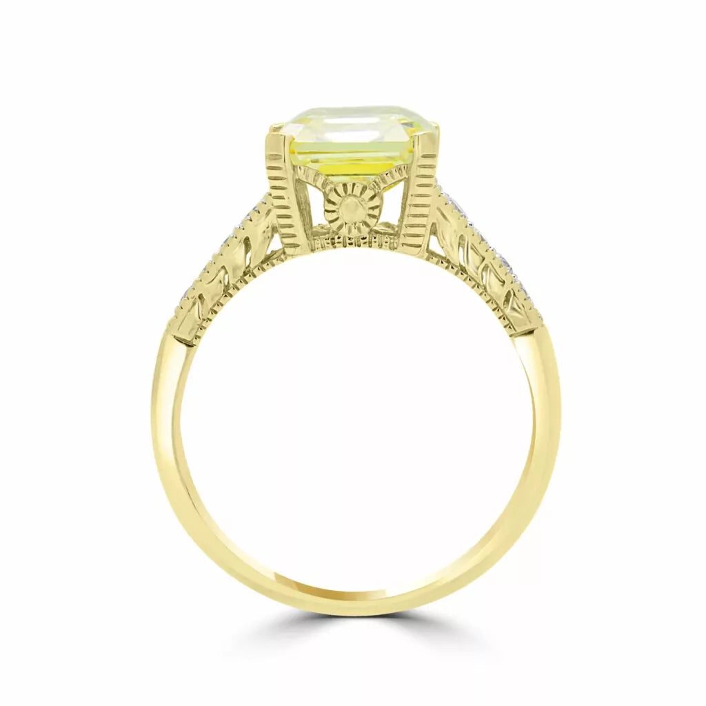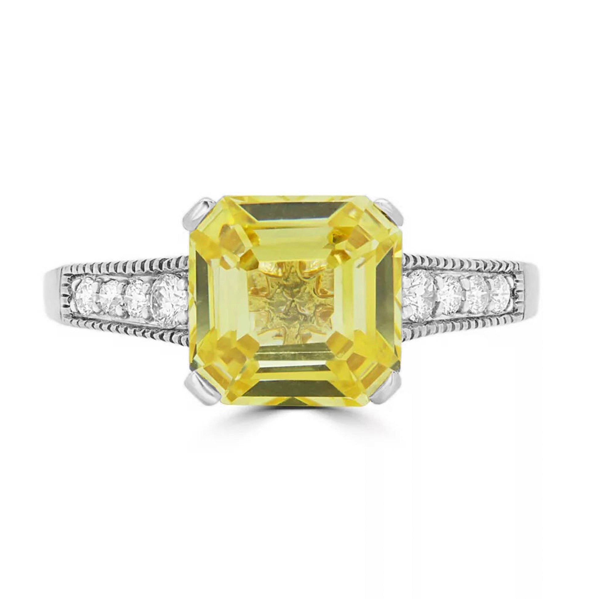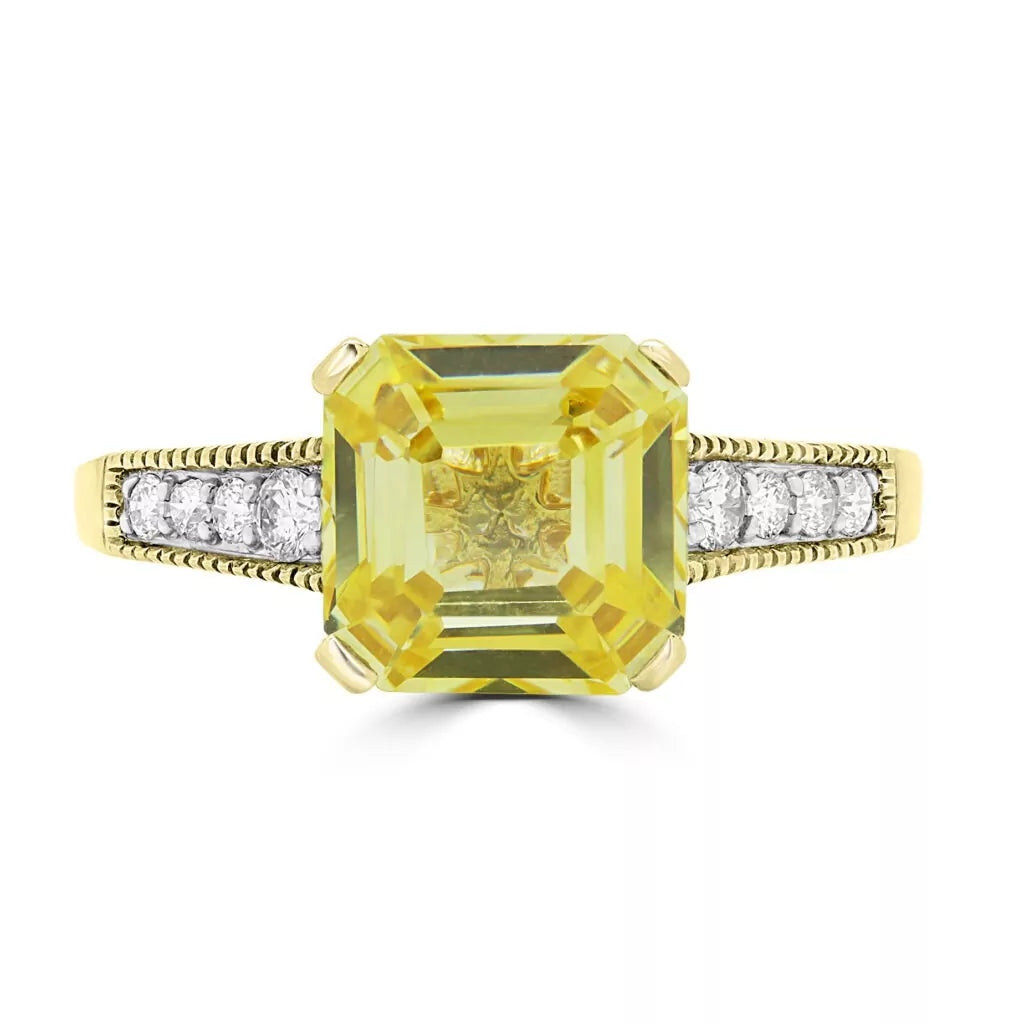 Splendide bague en diamant et zircone cubique jaune canari en or jaune 14 carats