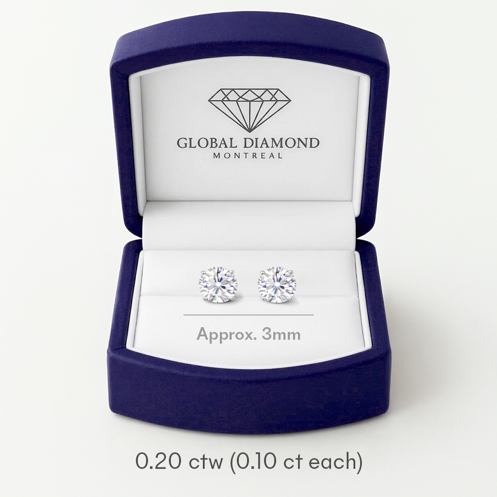 Boucles d'oreilles clous 10+10 pts diamants vs fond vissé or blanc 14 carats