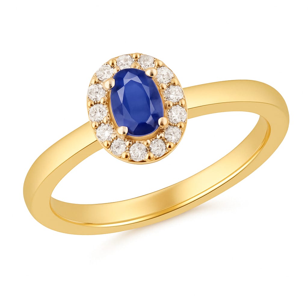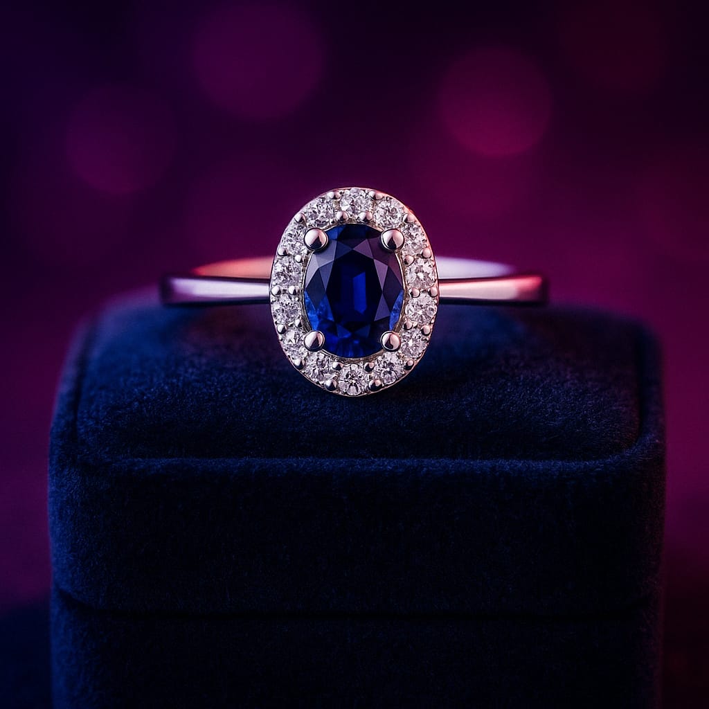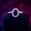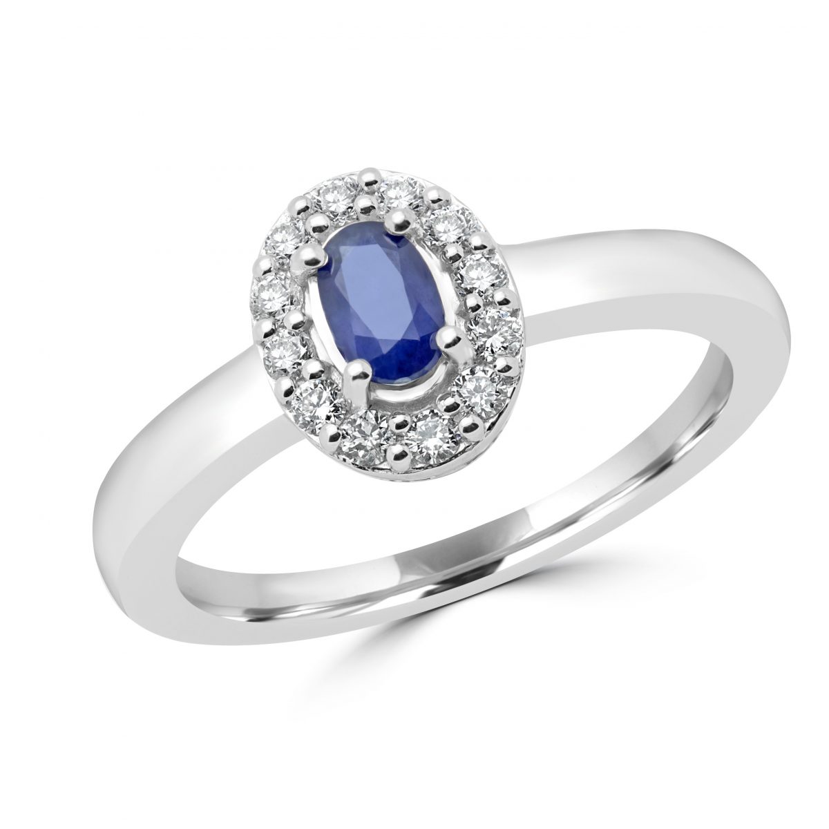 0.48 carat sapphire 0.18 carat diamonds halo ring 10k white gold