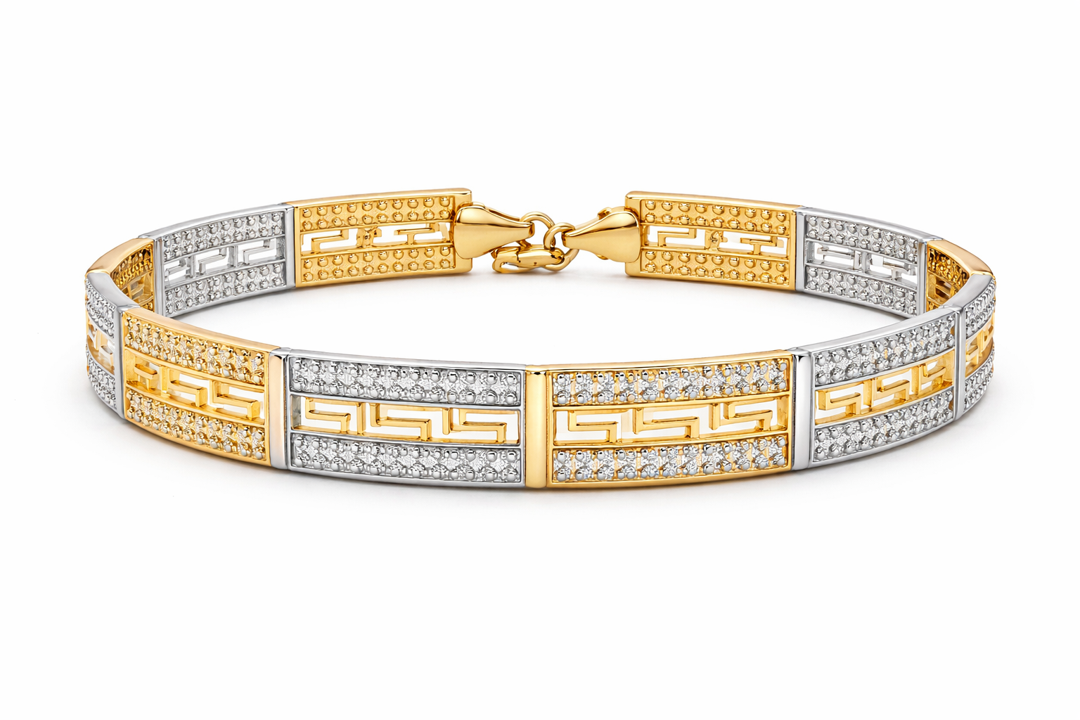 7″ 10k Yellow gold greek key bracelet 10K with CZ