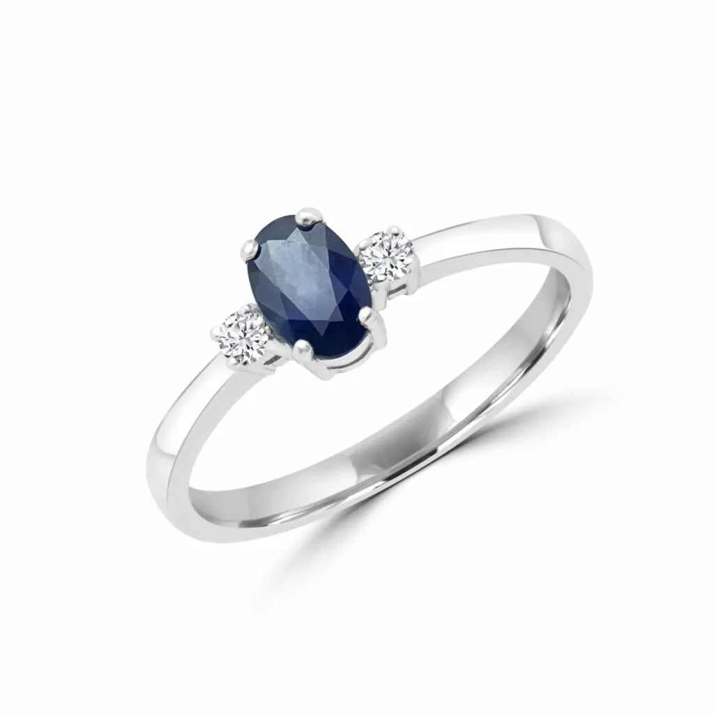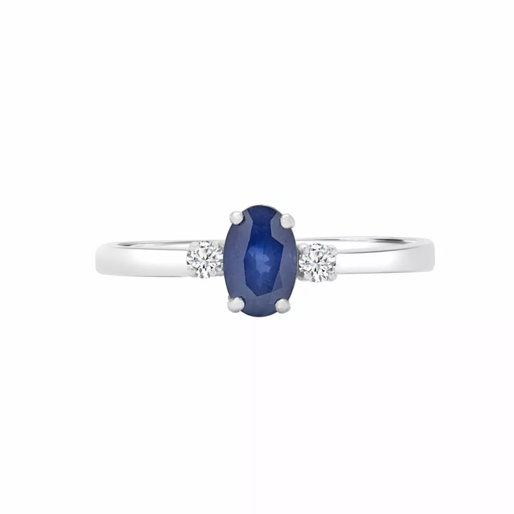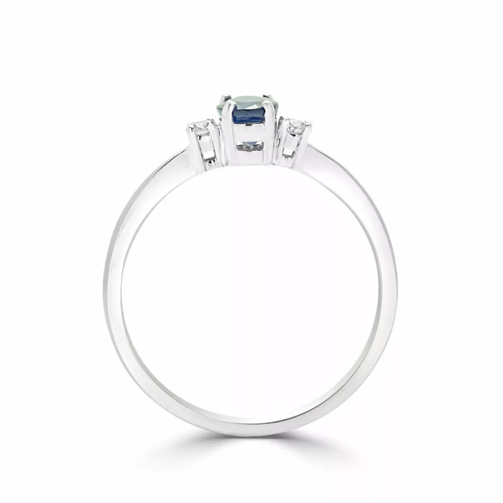 Bright blue sapphire & diamond solitaire ring in 10k white gold
