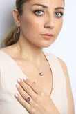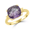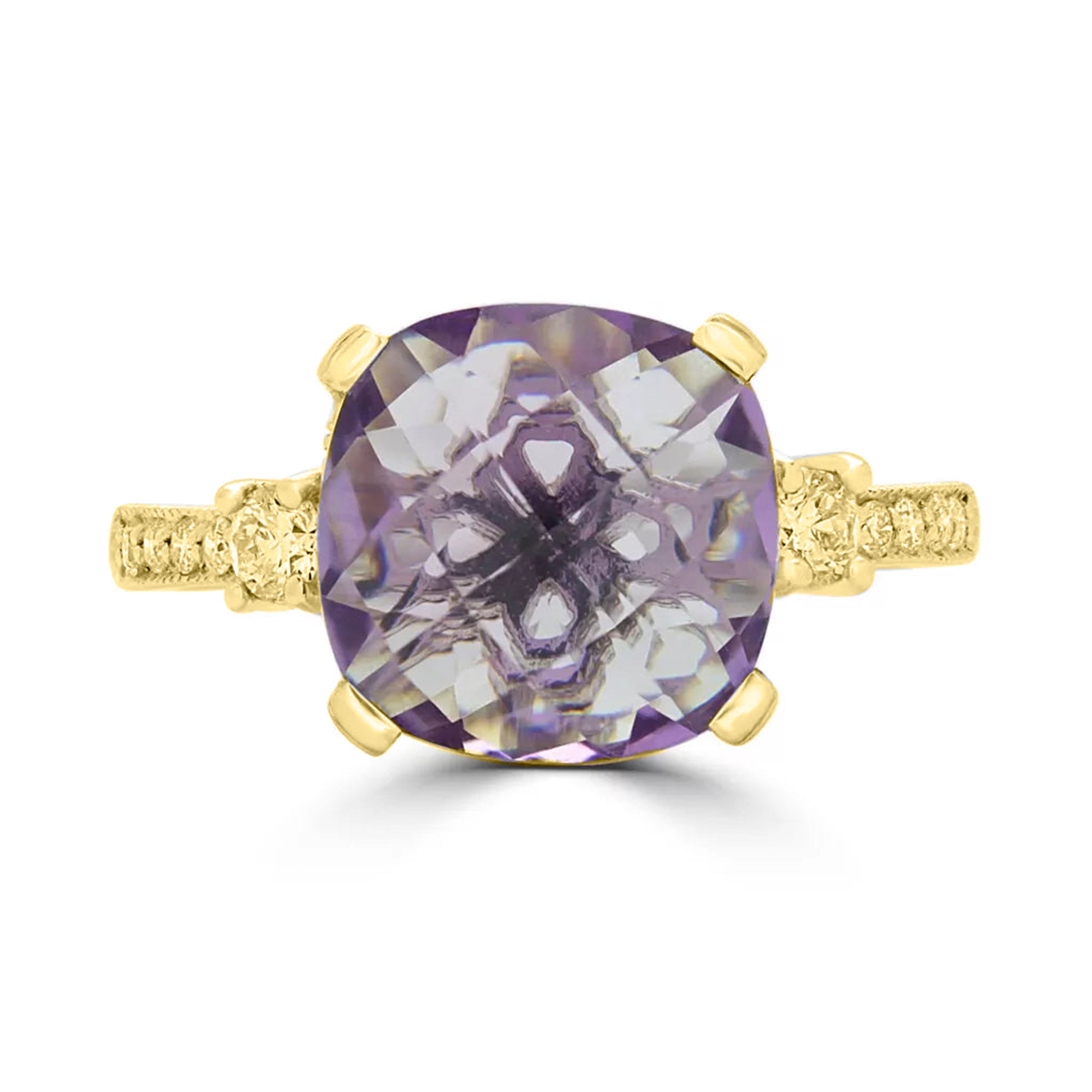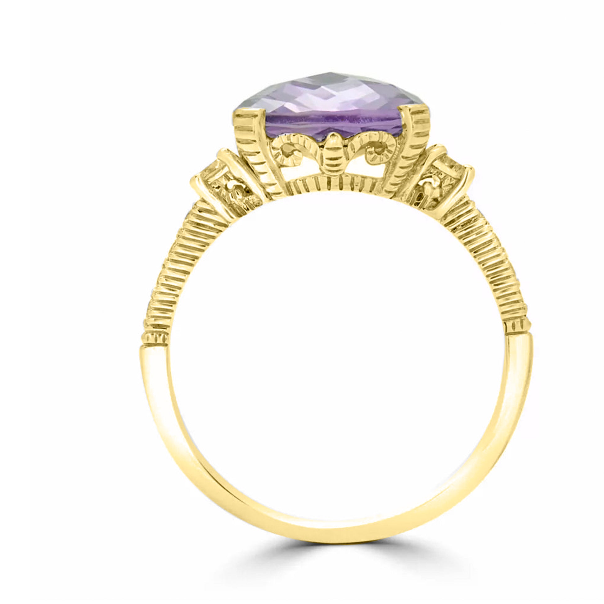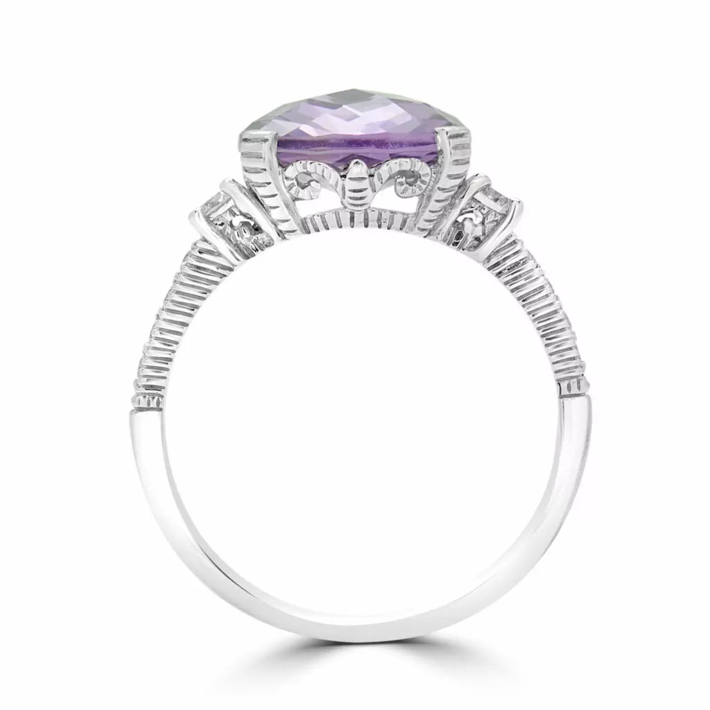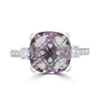 Cushion cut amethyst color CZ & diamond ring in 14k white gold