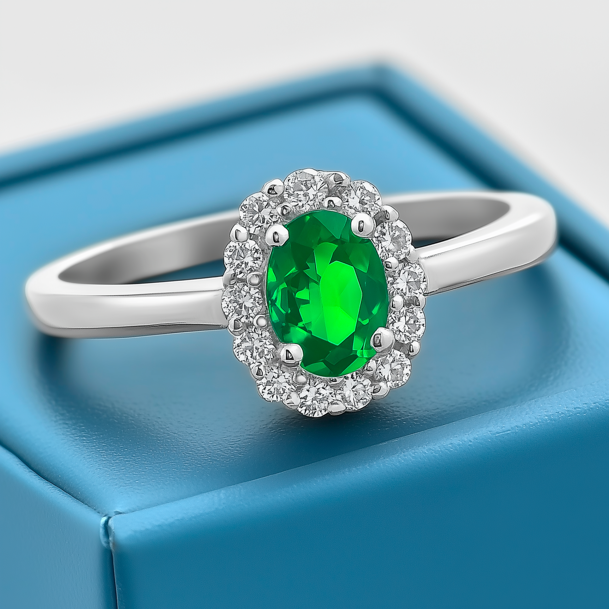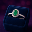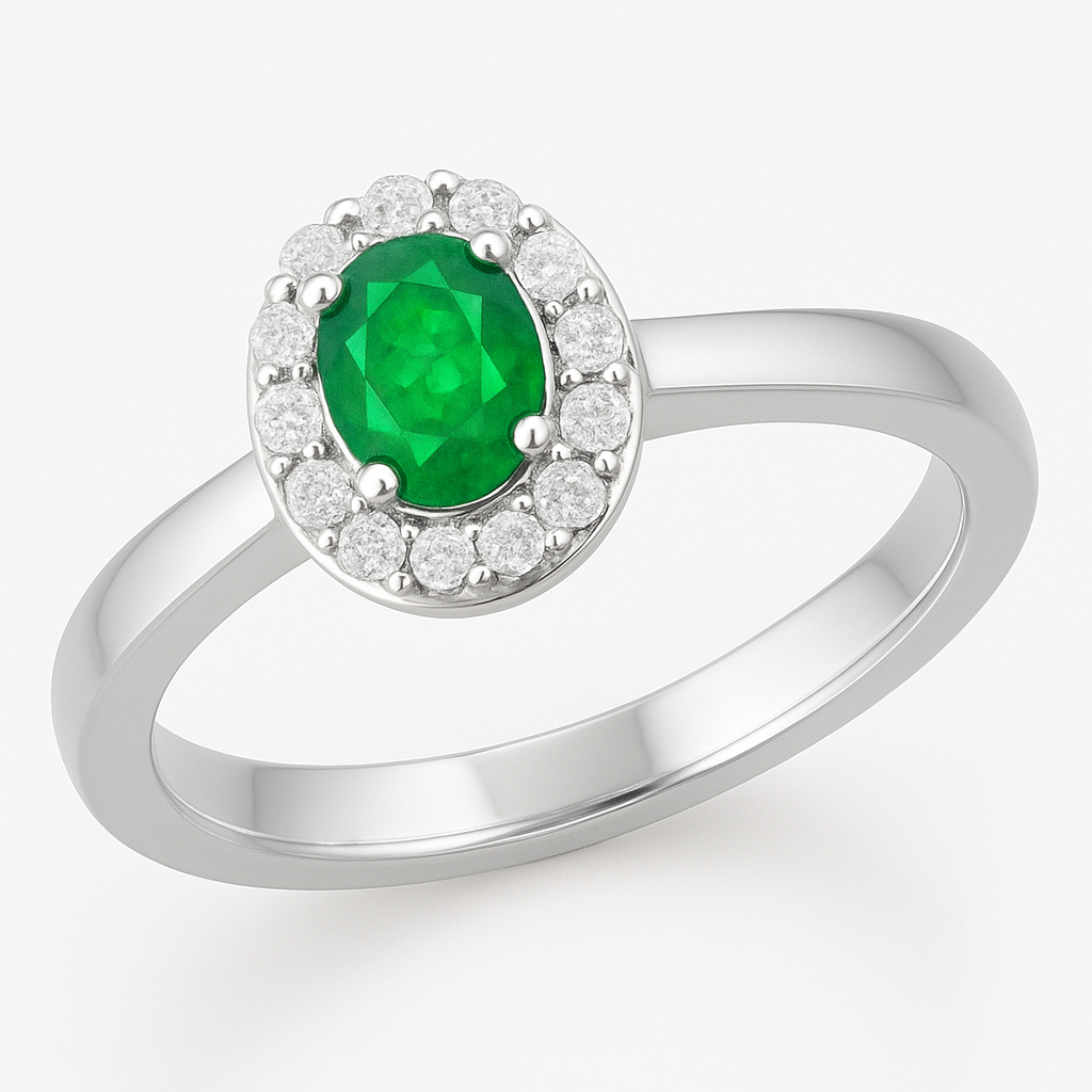 Emerald & diamond halo cocktail ring 0.48 (ctw) in 10k white gold