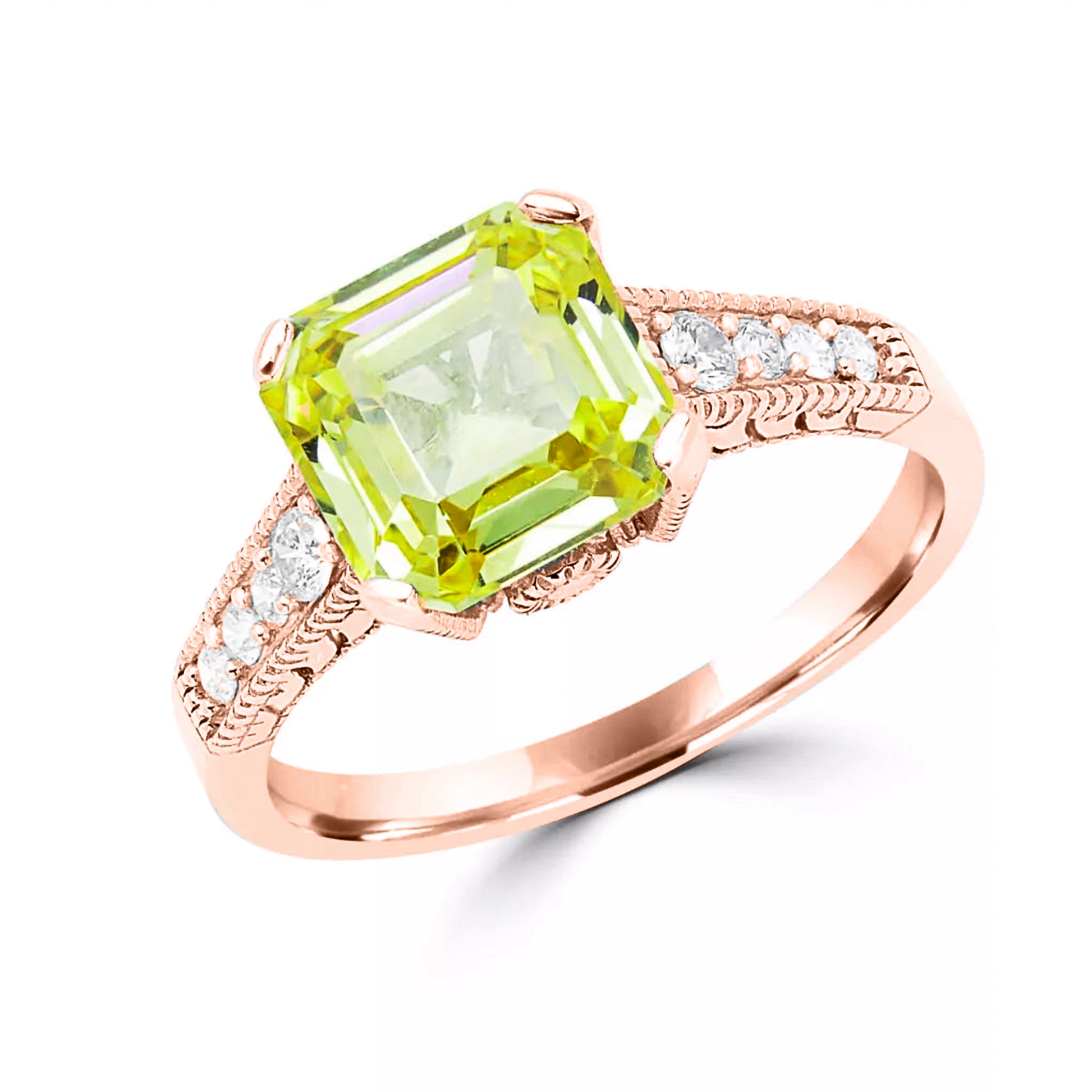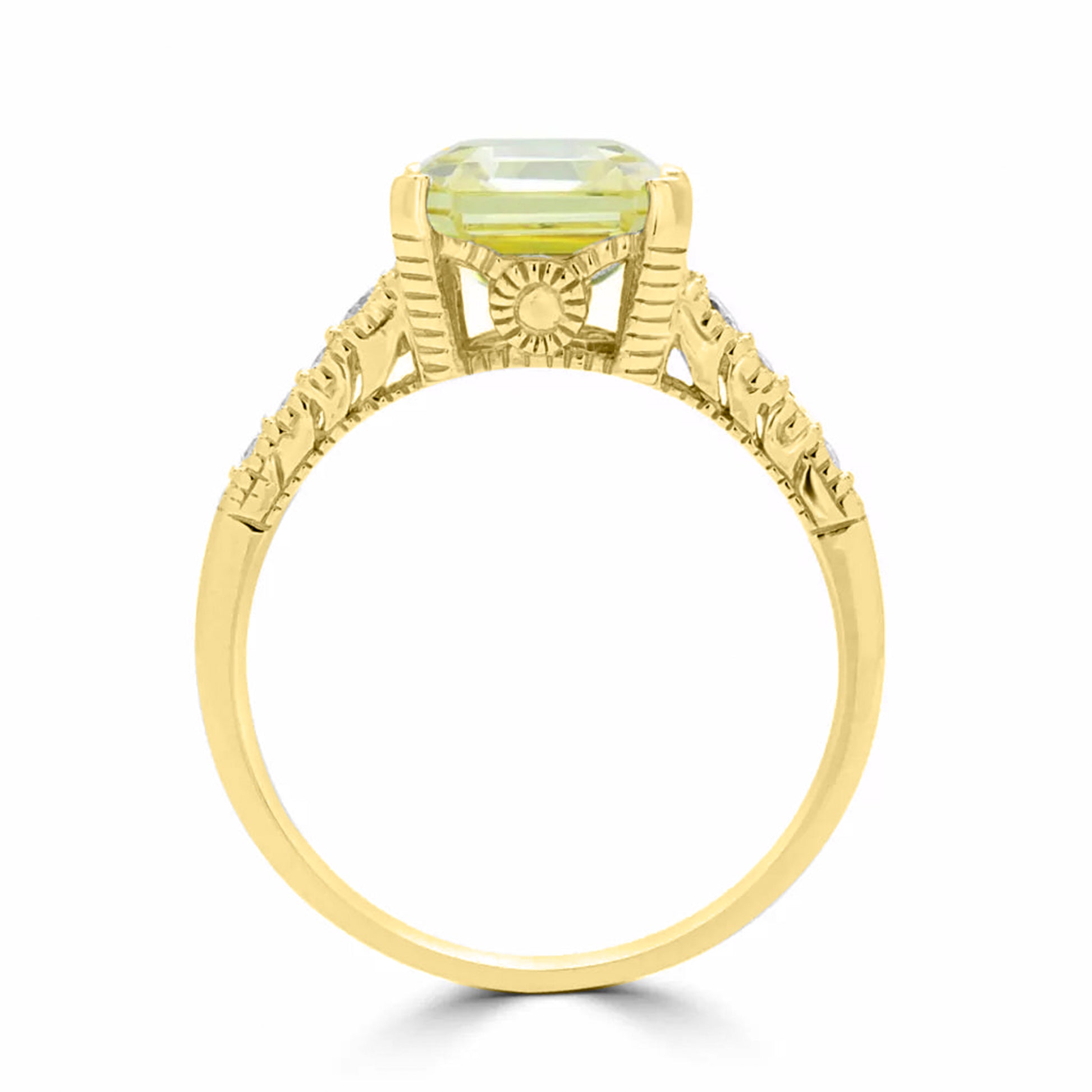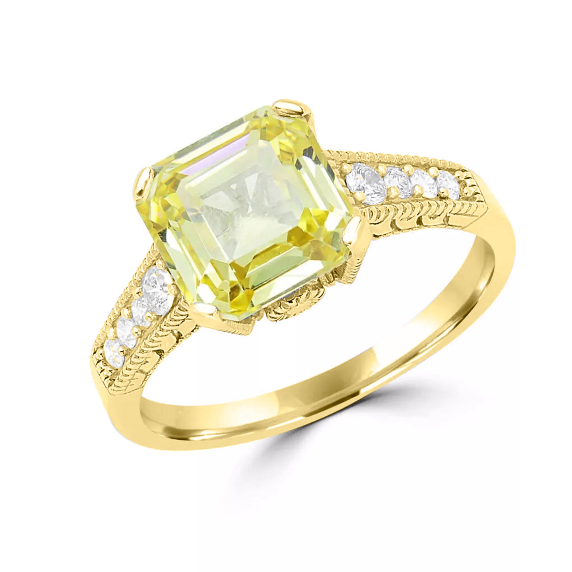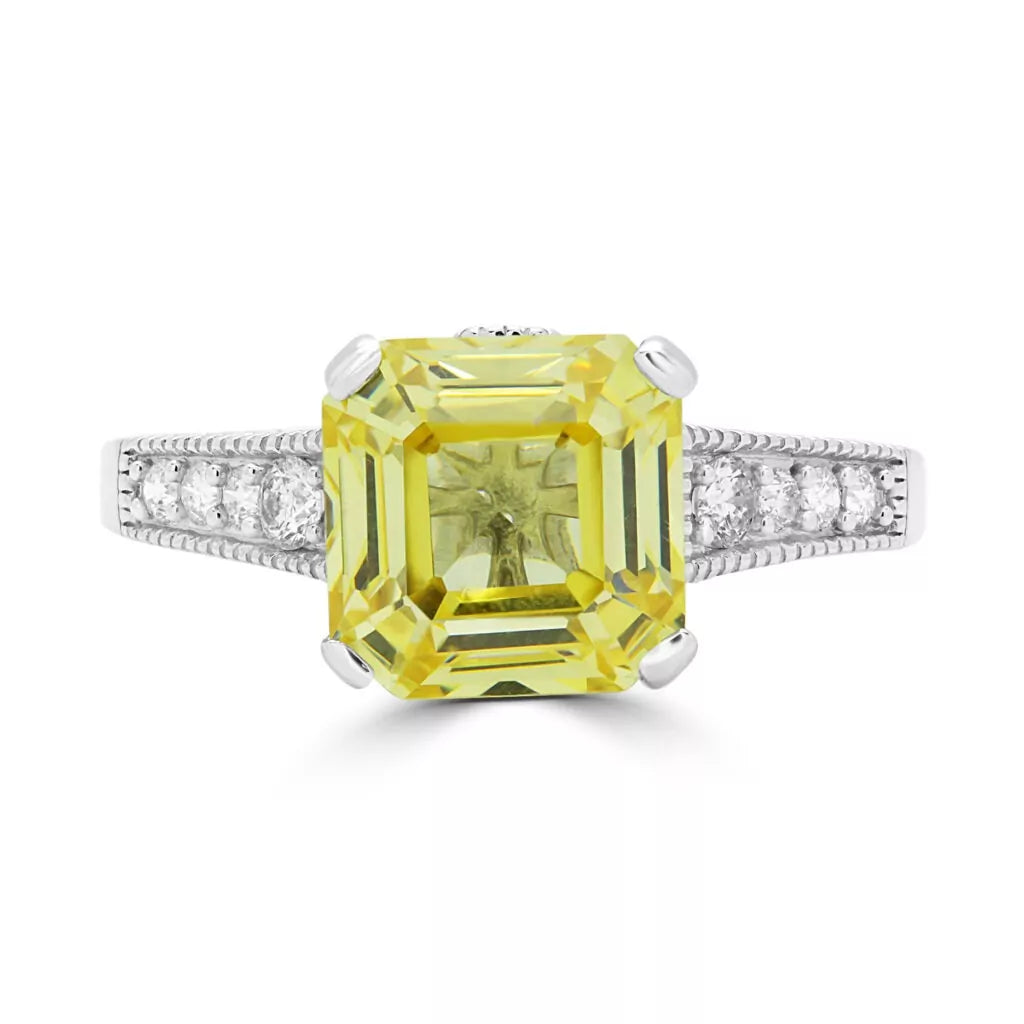 Exquisite canary yellow CZ & diamond ring in 14k white gold