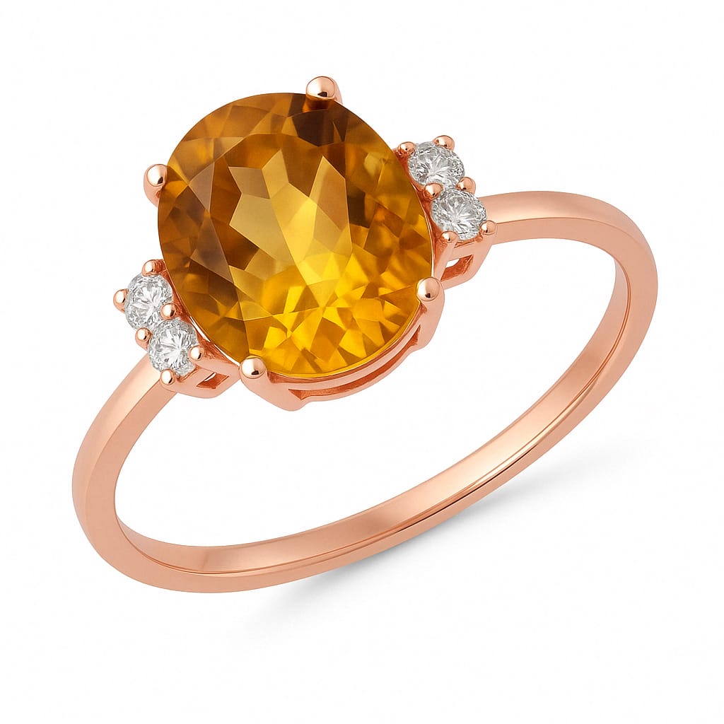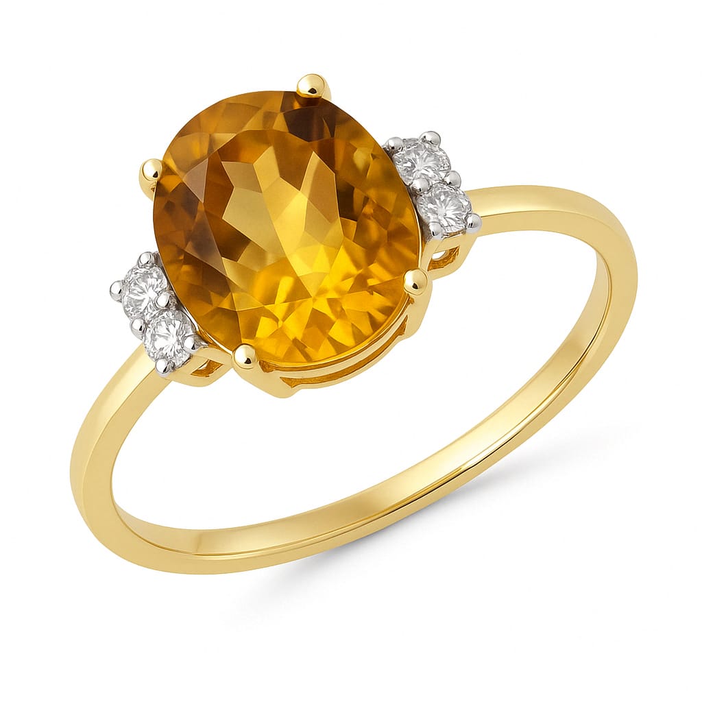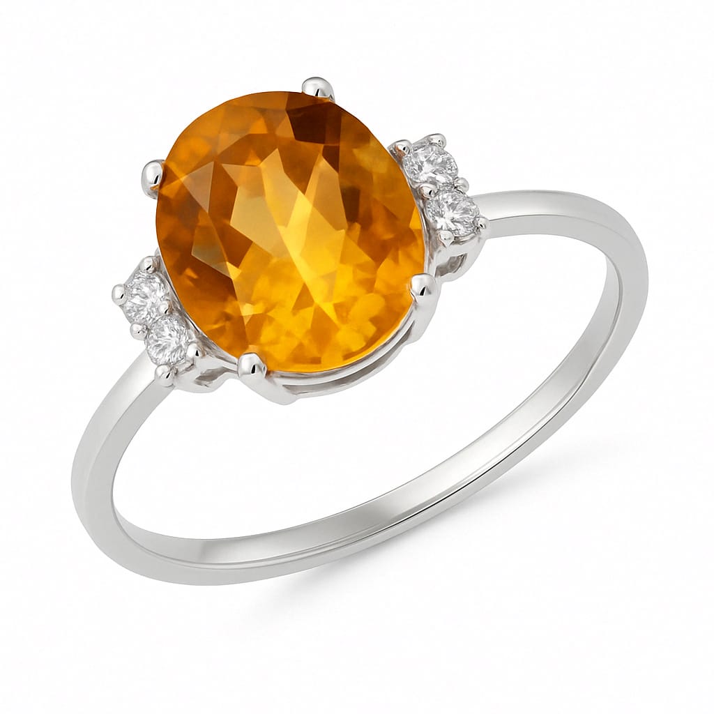 Fancy 10x8 mm citrine and diamond 0.09 (ctw) in 14k white gold